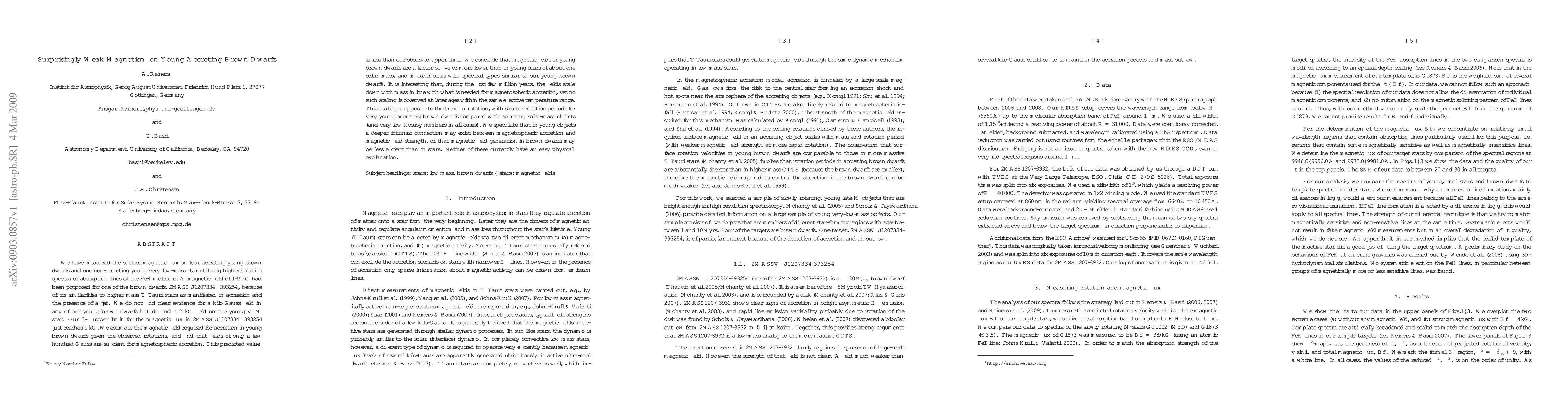 This study reveals surprisingly weak magnetic fields in young accreting brown dwarfs, with upper limits reaching only a few hundred Gauss, significantly lower than the kilo-Gauss fields expected and observed in young stars. The findings suggest a deeper connection between magnetospheric accretion and magnetic field strength in young objects, or less efficient magnetic field generation in brown dwarfs compared to stars.