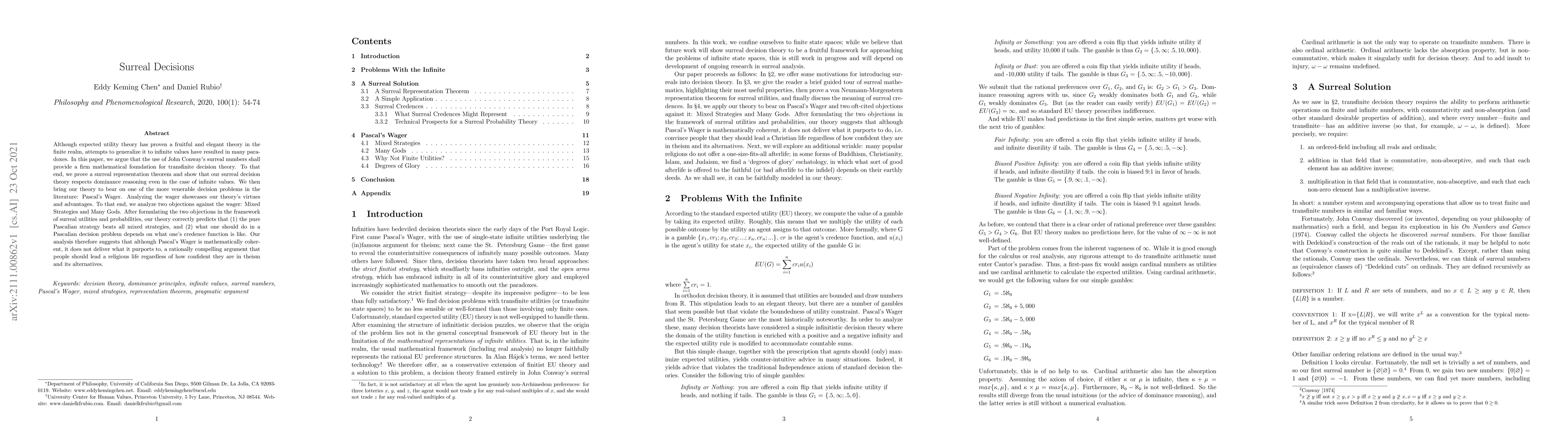 This paper proposes using John Conway's surreal numbers to create a robust mathematical foundation for transfinite decision theory, proving a surreal representation theorem that respects dominance reasoning even with infinite values. It applies this theory to Pascal's Wager, showing it can handle objections like Mixed Strategies and Many Gods, concluding that while mathematically coherent, the wager does not provide a compelling rational argument for religious life.