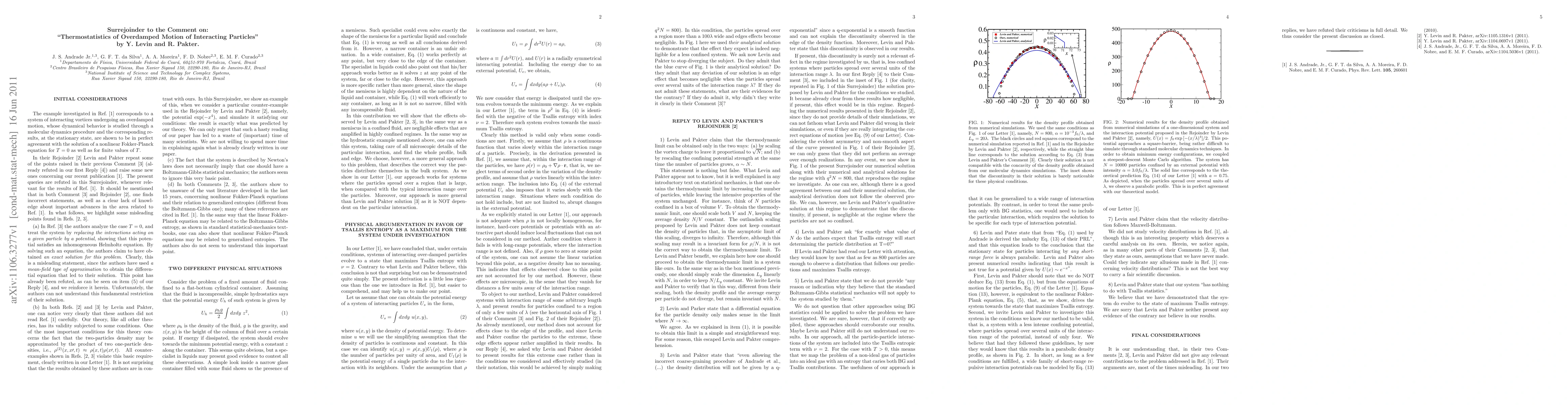 Researchers refute criticisms of their previous work on thermostatistics of overdamped motion of interacting particles, concluding that additional relevant contributions were not provided by the critics.