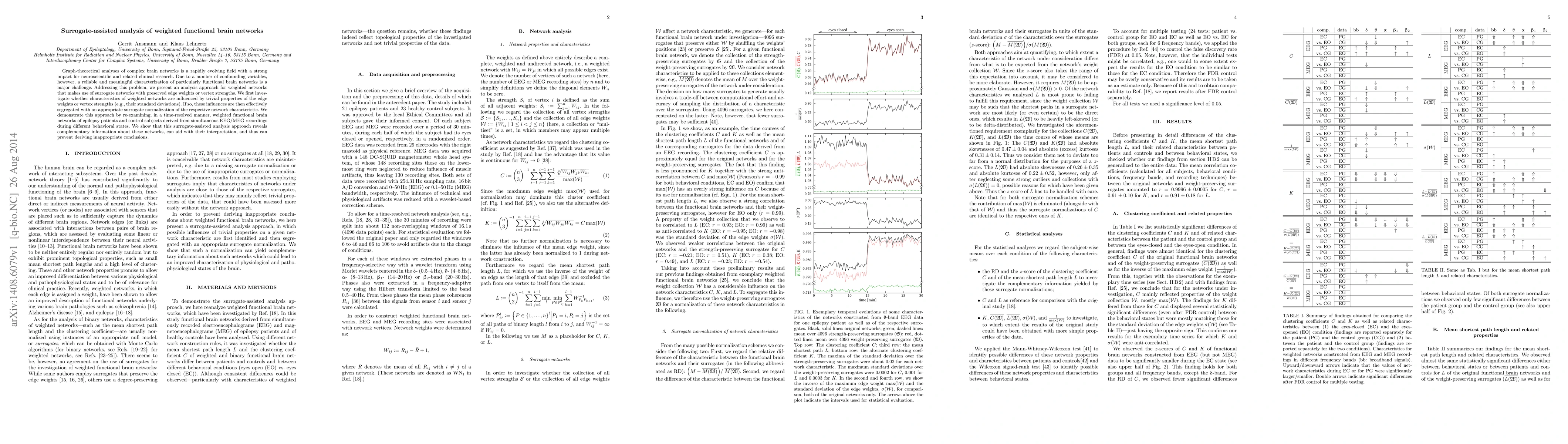 Graph-theoretical analyses of complex brain networks is a rapidly evolving field with a strong impact for neuroscientific and related clinical research. Due to a number of confounding variables, however, a reliable and meaningful characterization of particularly functional brain networks is a major challenge. Addressing this problem, we present an analysis approach for weighted networks that makes use of surrogate networks with preserved edge weights or vertex strengths. We first investigate whether characteristics of weighted networks are influenced by trivial properties of the edge weights or vertex strengths (e.g., their standard deviations). If so, these influences are then effectively segregated with an appropriate surrogate normalization of the respective network characteristic. We demonstrate this approach by re-examining, in a time-resolved manner, weighted functional brain networks of epilepsy patients and control subjects derived from simultaneous EEG/MEG recordings during different behavioral states. We show that this surrogate-assisted analysis approach reveals complementary information about these networks, can aid with their interpretation, and thus can prevent deriving inappropriate conclusions.