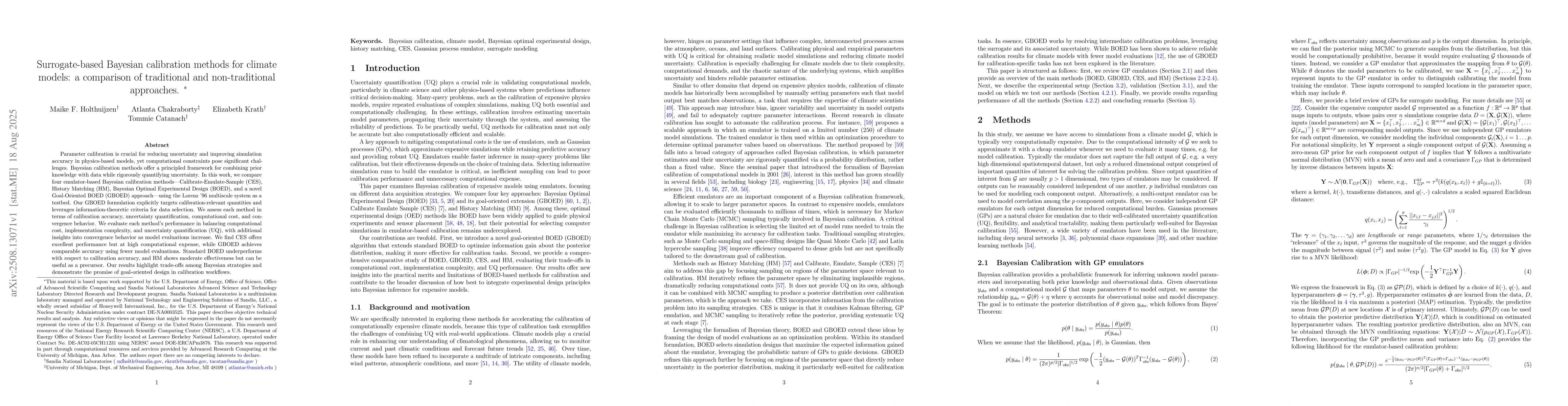 Parameter calibration is crucial for reducing uncertainty and improving simulation accuracy in physics-based models, yet computational constraints pose significant challenges. Bayesian calibration methods offer a principled framework for combining prior knowledge with data while rigorously quantifying uncertainty. In this work, we compare four emulator-based Bayesian calibration methods: Calibrate-Emulate-Sample (CES), History Matching (HM), Bayesian Optimal Experimental Design (BOED), and a novel Goal-Oriented BOED (GBOED) approach, using the Lorenz '96 multiscale system as a testbed. Our GBOED formulation explicitly targets calibration-relevant quantities and leverages information-theoretic criteria for data selection. We assess each method in terms of calibration accuracy, uncertainty quantification, computational cost, and convergence behavior. We evaluate each method's performance in balancing computational cost, implementation complexity, and uncertainty quantification (UQ), with additional insights into convergence behavior as model evaluations increase. We find CES offers excellent performance but at high computational expense, while GBOED achieves comparable accuracy using fewer model evaluations. Standard BOED underperforms with respect to calibration accuracy, and HM shows moderate effectiveness but can be useful as a precursor. Our results highlight trade-offs among Bayesian strategies and demonstrate the promise of goal-oriented design in calibration workflows.