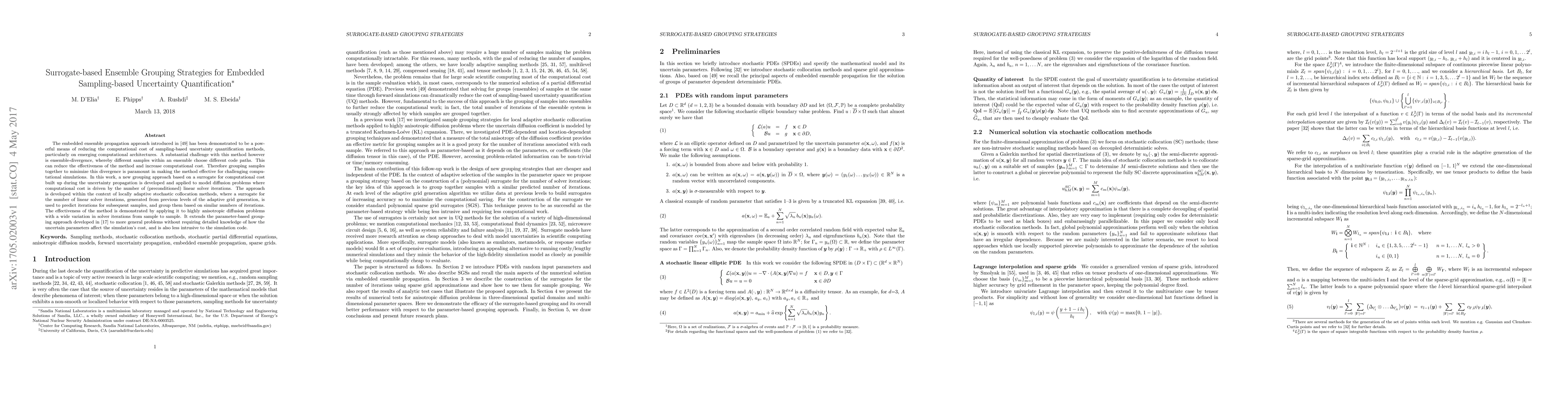 The embedded ensemble propagation approach introduced in [49] has been demonstrated to be a powerful means of reducing the computational cost of sampling-based uncertainty quantification methods, particularly on emerging computational architectures. A substantial challenge with this method however is ensemble-divergence, whereby different samples within an ensemble choose different code paths. This can reduce the effectiveness of the method and increase computational cost. Therefore grouping samples together to minimize this divergence is paramount in making the method effective for challenging computational simulations. In this work, a new grouping approach based on a surrogate for computational cost built up during the uncertainty propagation is developed and applied to model diffusion problems where computational cost is driven by the number of (preconditioned) linear solver iterations. The approach is developed within the context of locally adaptive stochastic collocation methods, where a surrogate for the number of linear solver iterations, generated from previous levels of the adaptive grid generation, is used to predict iterations for subsequent samples, and group them based on similar numbers of iterations. The effectiveness of the method is demonstrated by applying it to highly anisotropic diffusion problems with a wide variation in solver iterations from sample to sample. It extends the parameter-based grouping approach developed in [17] to more general problems without requiring detailed knowledge of how the uncertain parameters affect the simulation's cost, and is also less intrusive to the simulation code.