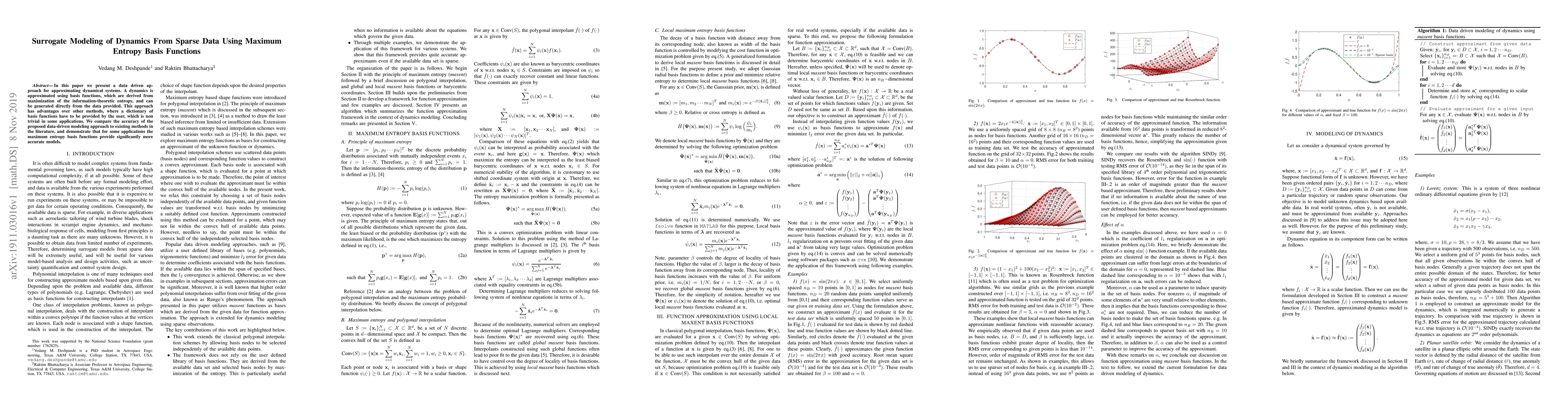 This paper introduces a data-driven method for approximating dynamical systems using maximum entropy basis functions derived directly from sparse data. Compared to traditional methods, this approach offers more accurate models for certain applications without requiring predefined basis functions.