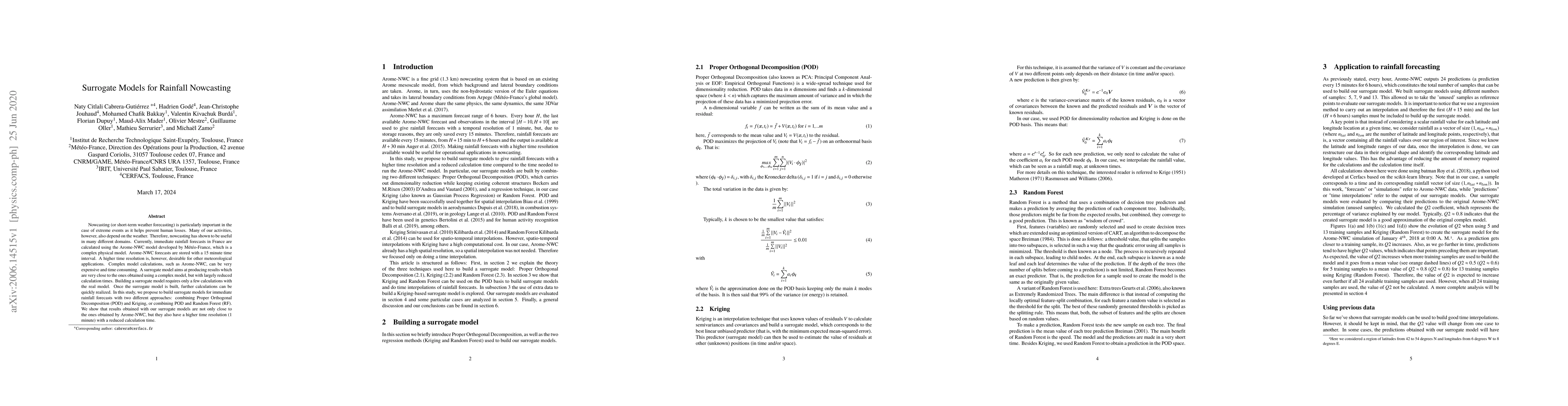 Researchers developed surrogate models to improve rainfall nowcasting forecasts with reduced calculation times, achieving results comparable to complex Arome-NWC model forecasts.