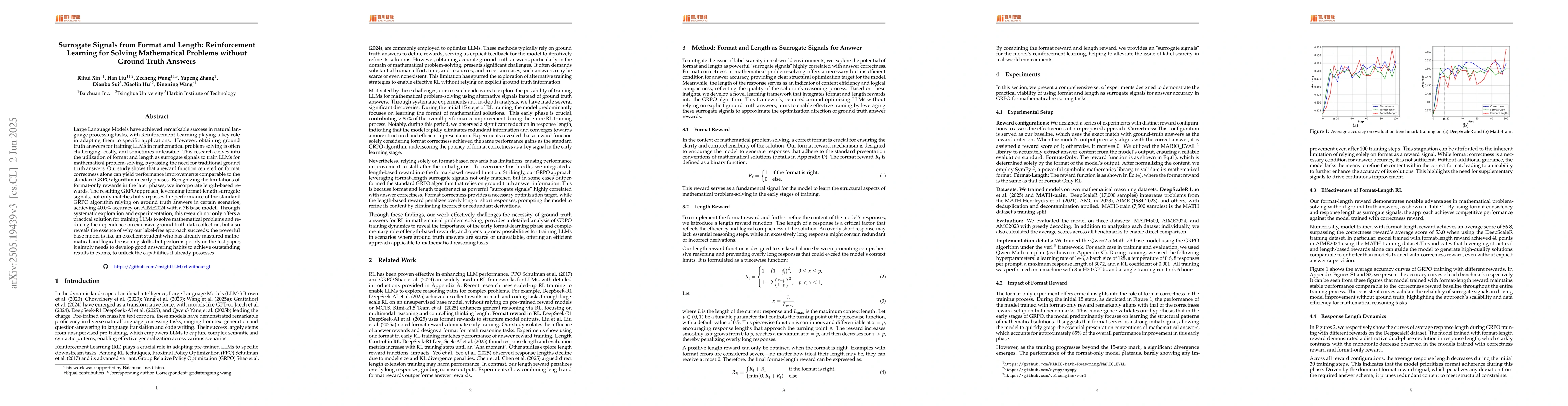 Researchers develop a new approach to train Large Language Models for mathematical problem-solving without ground truth answers, achieving comparable performance using format and length as surrogate signals.