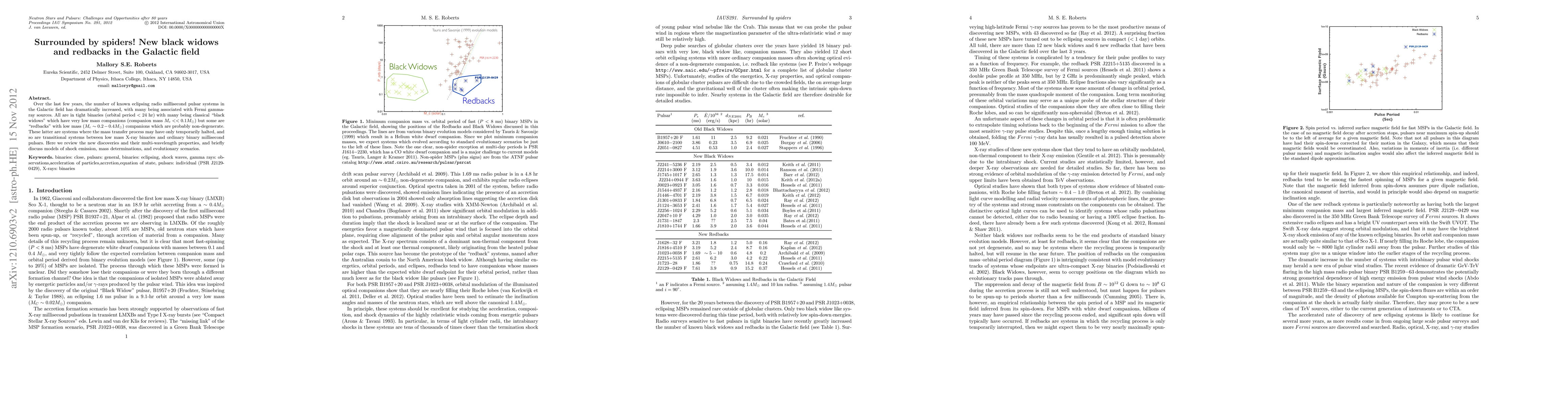 This paper reviews recent discoveries of eclipsing radio millisecond pulsar systems in the Galactic field, highlighting new "black widows" and "redbacks" with low mass companions. The study discusses their multi-wavelength properties, shock emission models, and evolutionary scenarios, noting the transitional nature of "redback" systems.