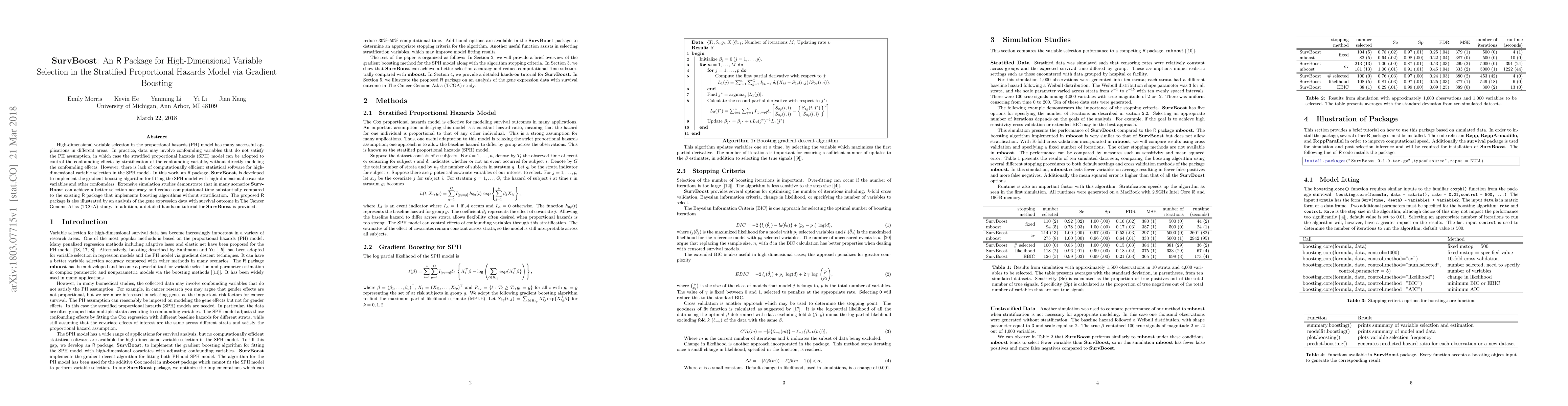 SurvBoost is an R package developed for high-dimensional variable selection in the stratified proportional hazards model using gradient boosting. It offers improved accuracy and computational efficiency compared to existing methods, as demonstrated through simulations and an application to TCGA gene expression data.