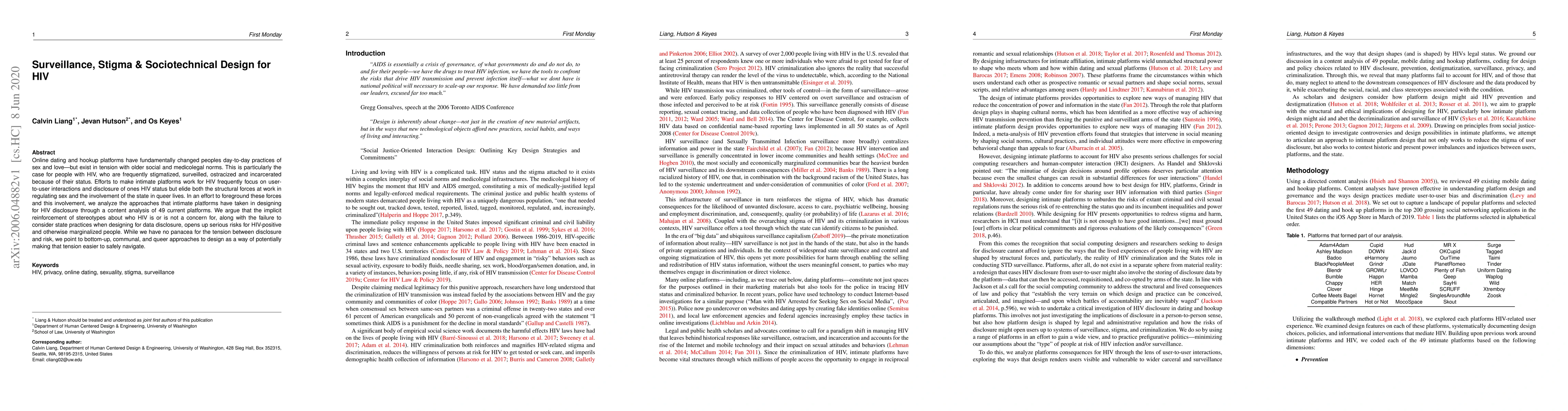 Online dating and hookup platforms have fundamentally changed people's day-to-day practices of sex and love-but exist in tension with older social and medicolegal norms. This is particularly the case for people with HIV, who are frequently stigmatized, surveilled, ostracized and incarcerated because of their status. Efforts to make intimate platforms "work" for HIV frequently focus on user-to-user interactions and disclosure of one's HIV status but elide both the structural forces at work in regulating sex and the involvement of the state in queer lives. In an effort to foreground these forces and this involvement, we analyze the approaches that intimate platforms have taken in designing for HIV disclosure through a content analysis of 49 current platforms. We argue that the implicit reinforcement of stereotypes about who HIV is or is not a concern for, along with the failure to consider state practices when designing for data disclosure, opens up serious risks for HIV-positive and otherwise marginalized people. While we have no panacea for the tension between disclosure and risk, we point to bottom-up, communal, and queer approaches to design as a way of potentially making that tension easier to safely navigate.