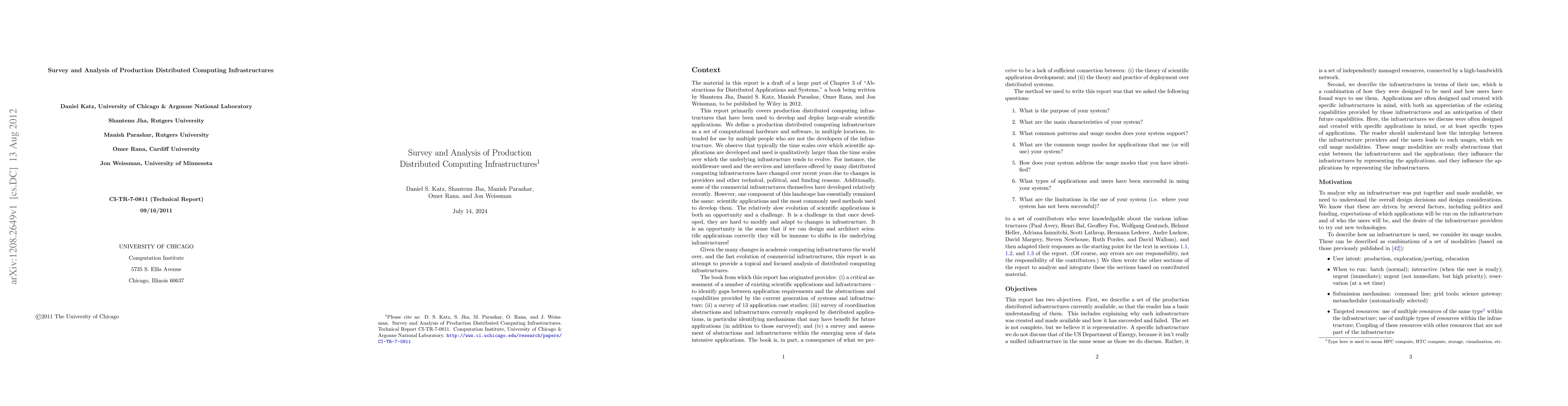 This paper surveys production distributed computing infrastructures, describing their design and usage, including how applications are tailored to specific infrastructure capabilities.