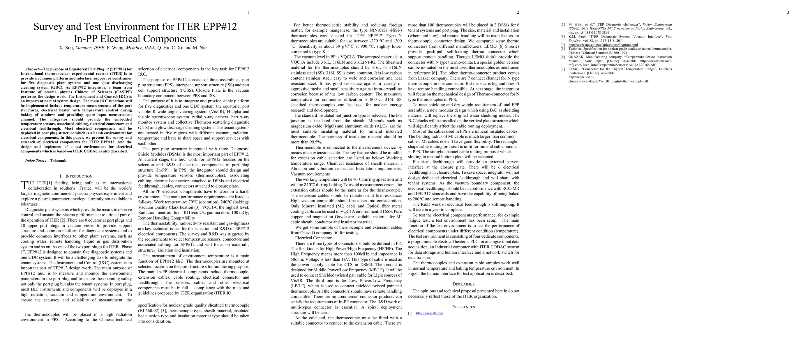 This paper presents a survey of electrical components for ITER EPP#12, including a test environment based on ITER CODAC, to support the development of diagnostic systems and glow discharging cleaning systems.
