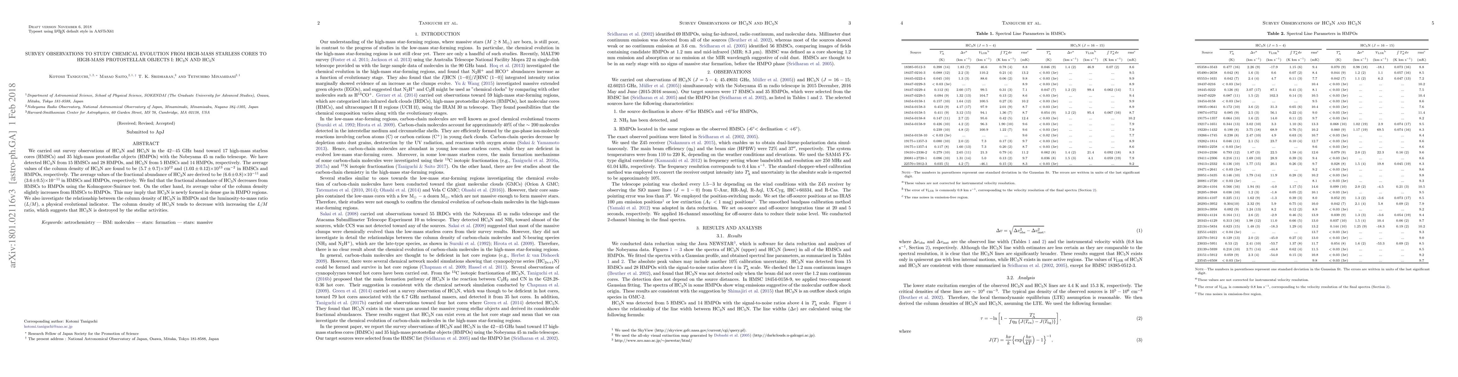 Researchers detected HC3N and HC5N in high-mass star-forming regions, finding that HC3N's abundance decreases as stars form, while its column density slightly increases, suggesting it may be newly formed.