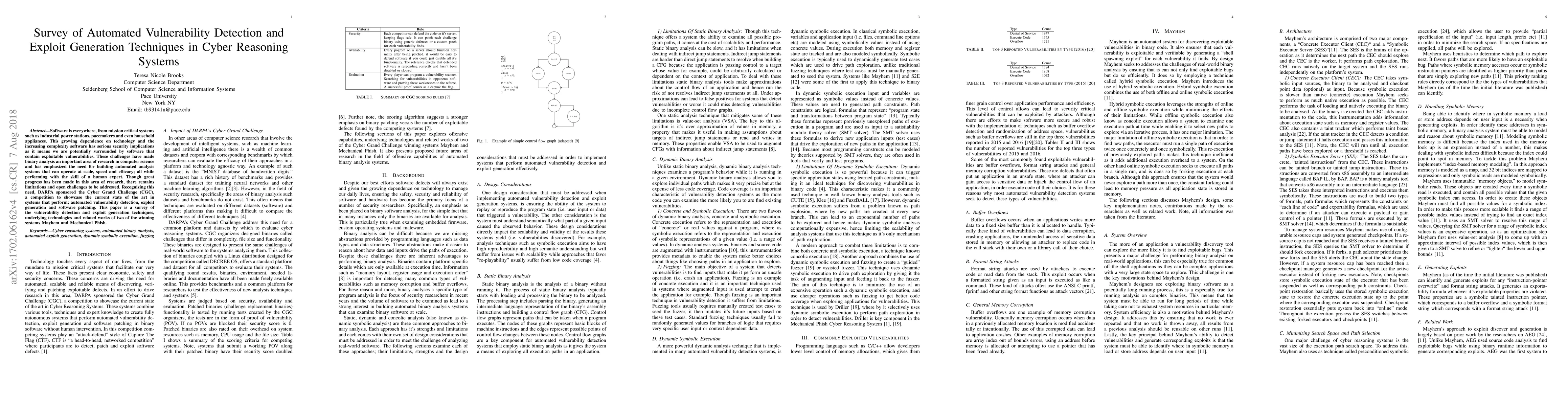 Software is everywhere, from mission critical systems such as industrial power stations, pacemakers and even household appliances. This growing dependence on technology and the increasing complexity software has serious security implications as it means we are potentially surrounded by software that contain exploitable vulnerabilities. These challenges have made binary analysis an important area of research in computer science and has emphasized the need for building automated analysis systems that can operate at scale, speed and efficacy; all while performing with the skill of a human expert. Though great progress has been made in this area of research, there remains limitations and open challenges to be addressed. Recognizing this need, DARPA sponsored the Cyber Grand Challenge (CGC), a competition to showcase the current state of the art in systems that perform; automated vulnerability detection, exploit generation and software patching. This paper is a survey of the vulnerability detection and exploit generation techniques, underlying technologies and related works of two of the winning systems Mayhem and Mechanical Phish.