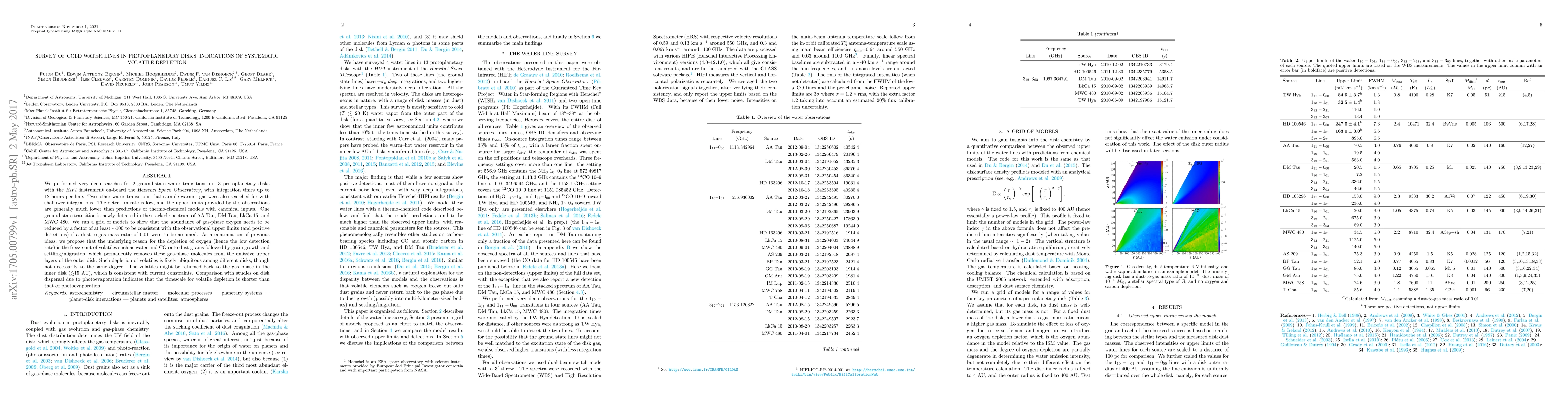 We performed very deep searches for 2 ground-state water transitions in 13 protoplanetary disks with the HIFI instrument on-board the Herschel Space Observatory, with integration times up to 12 hours per line. Two other water transitions that sample warmer gas were also searched for with shallower integrations. The detection rate is low, and the upper limits provided by the observations are generally much lower than predictions of thermo-chemical models with canonical inputs. One ground-state transition is newly detected in the stacked spectrum of AA Tau, DM Tau, LkCa 15, and MWC 480. We run a grid of models to show that the abundance of gas-phase oxygen needs to be reduced by a factor of at least ~100 to be consistent with the observational upper limits (and positive detections) if a dust-to-gas mass ratio of 0.01 were to be assumed. As a continuation of previous ideas, we propose that the underlying reason for the depletion of oxygen (hence the low detection rate) is the freeze-out of volatiles such as water and CO onto dust grains followed by grain growth and settling/migration, which permanently removes these gas-phase molecules from the emissive upper layers of the outer disk. Such depletion of volatiles is likely ubiquitous among different disks, though not necessarily to the same degree. The volatiles might be returned back to the gas phase in the inner disk (within about 15 AU), which is consistent with current constraints. Comparison with studies on disk dispersal due to photoevaporation indicates that the timescale for volatile depletion is shorter than that of photoevaporation.