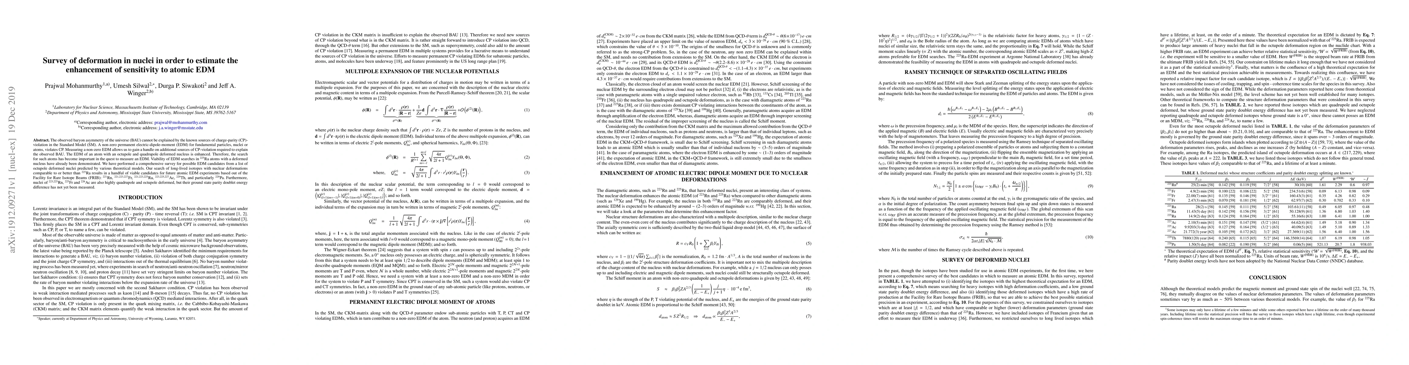 The observed baryon asymmetry of the universe (BAU) cannot be explained by the known sources of charge-parity (CP)-violation in the Standard Model (SM). A non-zero permanent electric-dipole-moment (EDM) for fundamental particles, nuclei or atoms, violates CP. Measuring a non-zero EDM allows us to gain a handle on additional sources of CP-violation required to explain the observed BAU. The EDM of an atom with an octupole and quadrupole deformed nucleus is enhanced. Therefore, the search for such atoms has become important in the quest to measure an EDM. Viability of EDM searches in $^{225}$Ra atoms with a deformed nucleus have already been demonstrated. We have performed a comprehensive survey for possible EDM candidates from a list of octupole deformed nuclei predicted by various theoretical models. Our search of long-lived isotopes with nuclear deformations comparable to or better than $^{225}$Ra results in a handful of viable candidates for future atomic EDM experiments based out of the Facility for Rare Isotope Beams (FRIB): $^{221}$Rn, $^{221,223,227}$Fr, $^{221,223,225}$Ra, $^{223,225,227}$Ac, $^{229}$Th, and particularly $^{229}$Pa. Furthermore, nuclei of $^{223,225}$Rn, $^{225}$Fr and $^{226}$Ac are also highly quadrupole and octupole deformed, but their ground state parity doublet energy difference has not yet been measured.