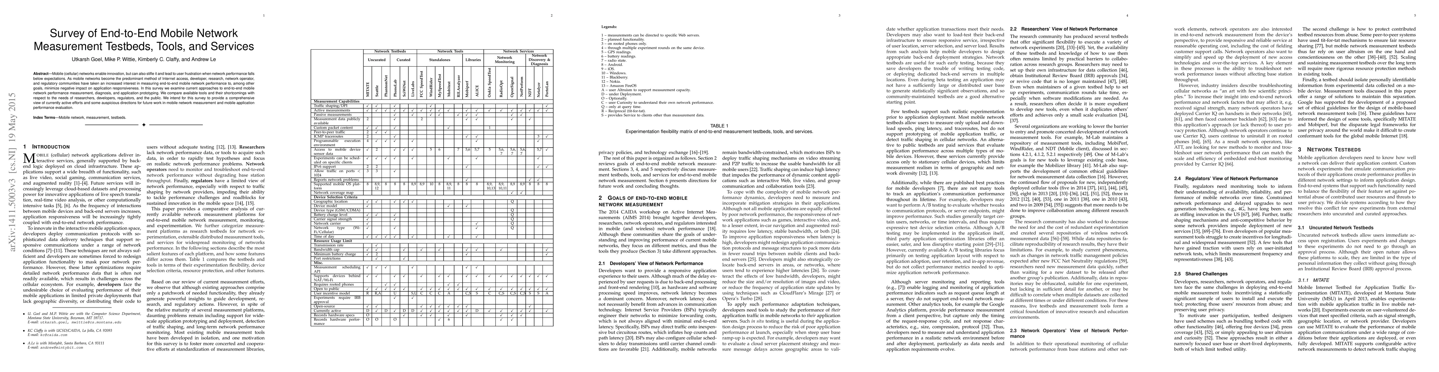 This survey examines current tools and services for measuring end-to-end mobile network performance, highlighting their shortcomings and comparing them to the needs of various stakeholders. It aims to provide a comprehensive overview of existing efforts and suggest promising directions for future improvements in mobile network measurement.