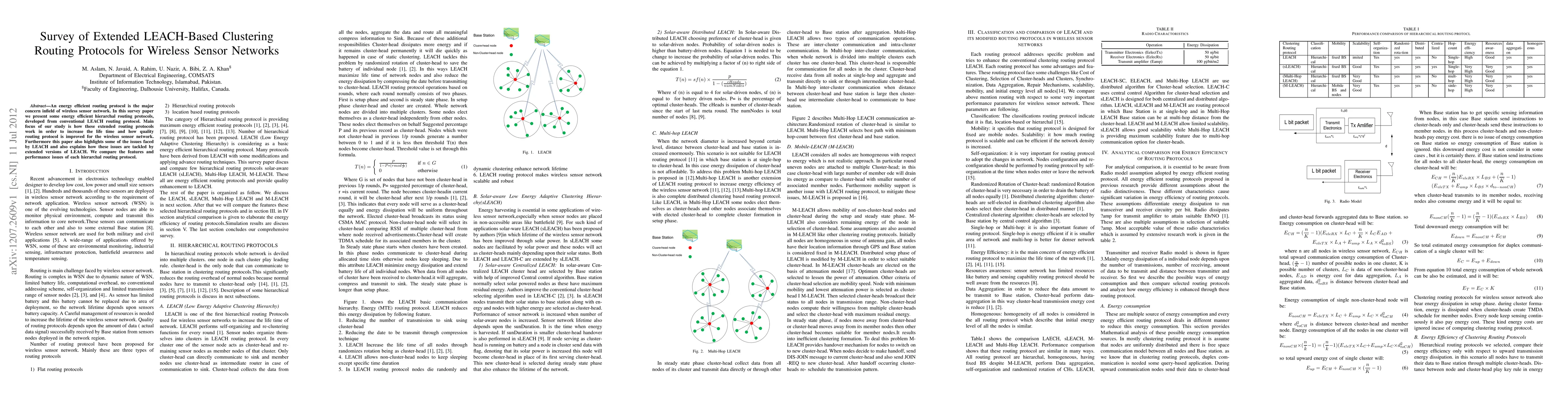 This survey paper reviews energy-efficient hierarchical routing protocols derived from the conventional LEACH protocol for Wireless Sensor Networks (WSNs), focusing on their mechanisms to enhance network lifetime and improve routing quality. It also addresses issues in LEACH and how extended versions tackle these challenges, comparing their features and performance.