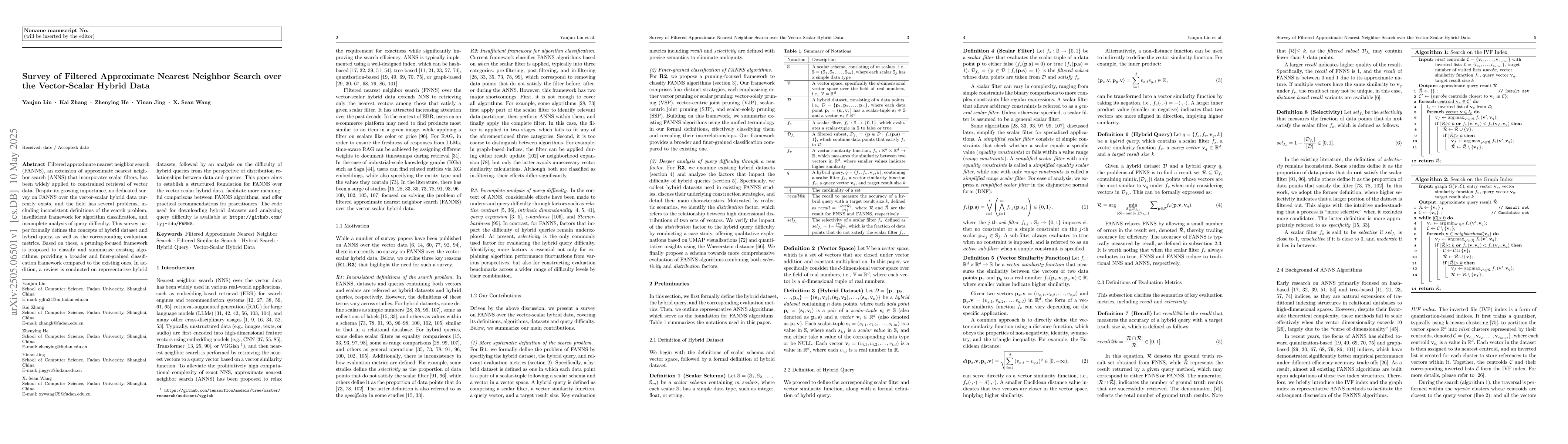 This survey paper establishes a framework for Filtered Approximate Nearest Neighbor Search (FANNS) on vector-scalar hybrid data, providing a structured foundation for comparing algorithms and facilitating practical recommendations.
