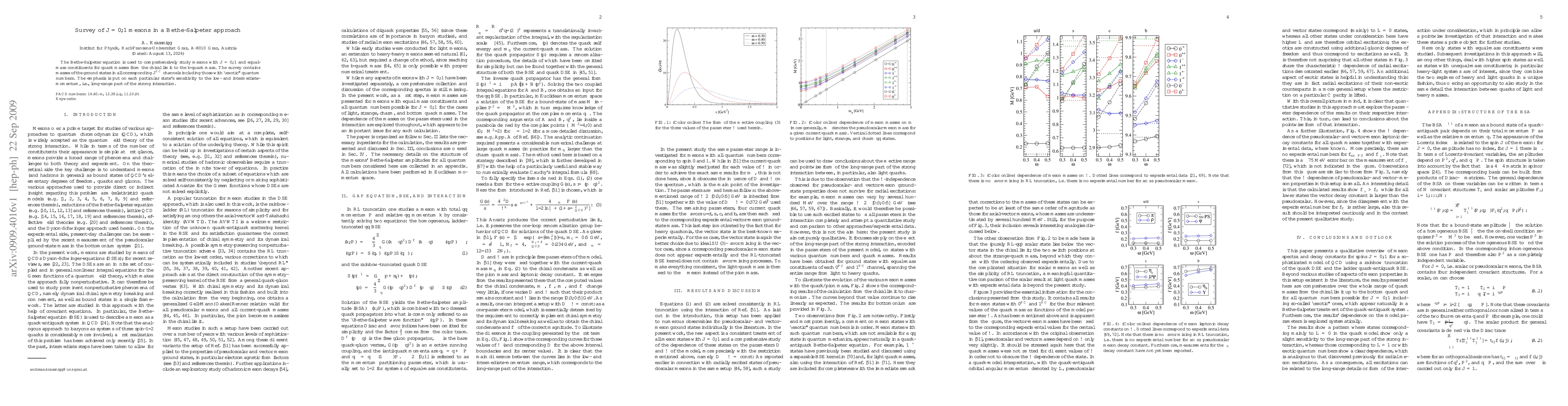 The Bethe-Salpeter equation is used to comprehensively study mesons with J=0,1 and equal-mass constituents for quark masses from the chiral limit to the b-quark mass. The survey contains masses of the ground states in all corresponding J^{PC} channels including those with "exotic" quantum numbers. The emphasis is put on each particular state's sensitivity to the low- and intermediate-momentum, i.e., long-range part of the strong interaction.