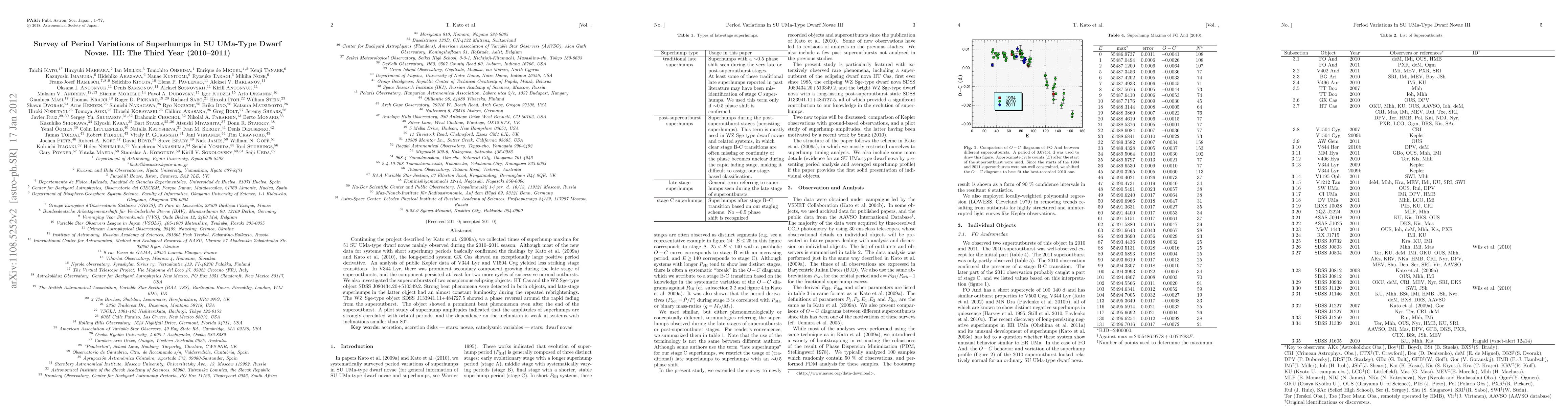 Continuing the project described by Kato et al. (2009, PASJ 61, S395, arXiv:0905.1757), we collected times of superhump maxima for 51 SU UMa-type dwarf novae mainly observed during the 2010-2011 season. Although most of the new data for systems with short superhump periods basically confirmed the findings by Kato et al. (2009) and Kato et al. (2010, PASJ 62, 1525, arXiv:1009.5444), the long-period system GX Cas showed an exceptionally large positive period derivative. An analysis of public Kepler data of V344 Lyr and V1504 Cyg yielded less striking stage transitions. In V344 Lyr, there was prominent secondary component growing during the late stage of superoutbursts, and the component persisted at least for two more cycles of successive normal outbursts. We also investigated the superoutbursts of two conspicuous eclipsing objects: HT Cas and the WZ Sge-type object SDSS J080434.20+510349.2. Strong beat phenomena were detected in both objects, and late-stage superhumps in the latter object had an almost constant luminosity during the repeated rebrightenings. The WZ Sge-type object SDSS J133941.11+484727.5 showed a phase reversal around the rapid fading from the superoutburst. The object showed a prominent beat phenomenon even after the end of the superoutburst. A pilot study of superhump amplitudes indicated that the amplitudes of superhumps are strongly correlated with orbital periods, and the dependence on the inclination is weak in systems with inclinations smaller than 80 deg.