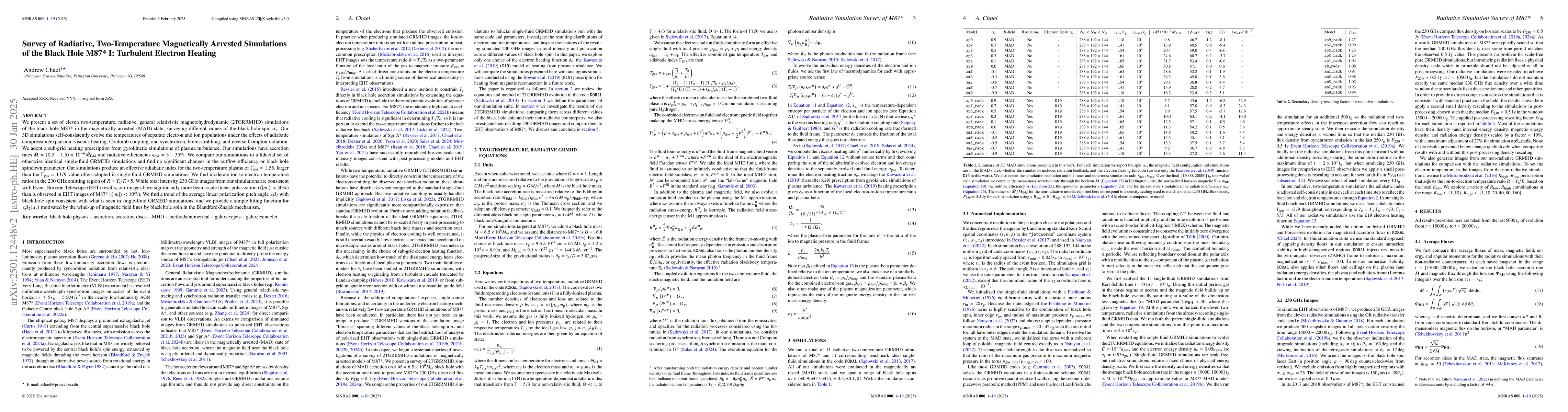 This paper presents 11 simulations of the black hole M87* in a magnetically arrested state using two-temperature radiative general relativistic magnetohydrodynamic models. The simulations explore turbulent electron heating mechanisms and find moderate ion-to-electron temperature ratios, higher effective adiabatic indices, and significantly more linear polarization compared to observations by the Event Horizon Telescope.