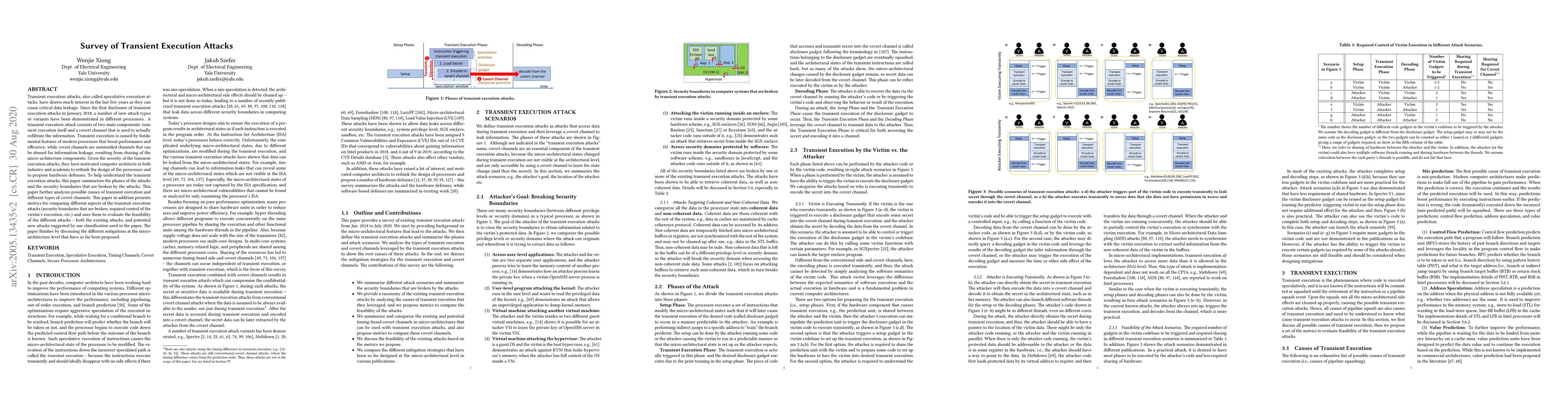 This survey provides a comprehensive understanding of transient execution attacks, their components, and phases, aiding in the development of effective mitigation strategies and enhancing the security of modern processor architectures.