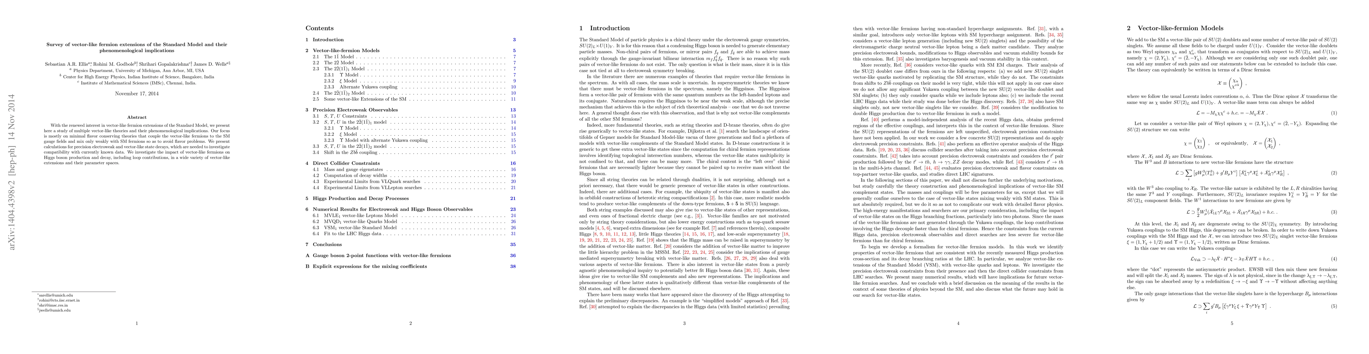 This paper studies vector-like fermion extensions of the Standard Model, investigating their phenomenological implications on Higgs boson production and decay, as well as precision electroweak and vector-like state decays.