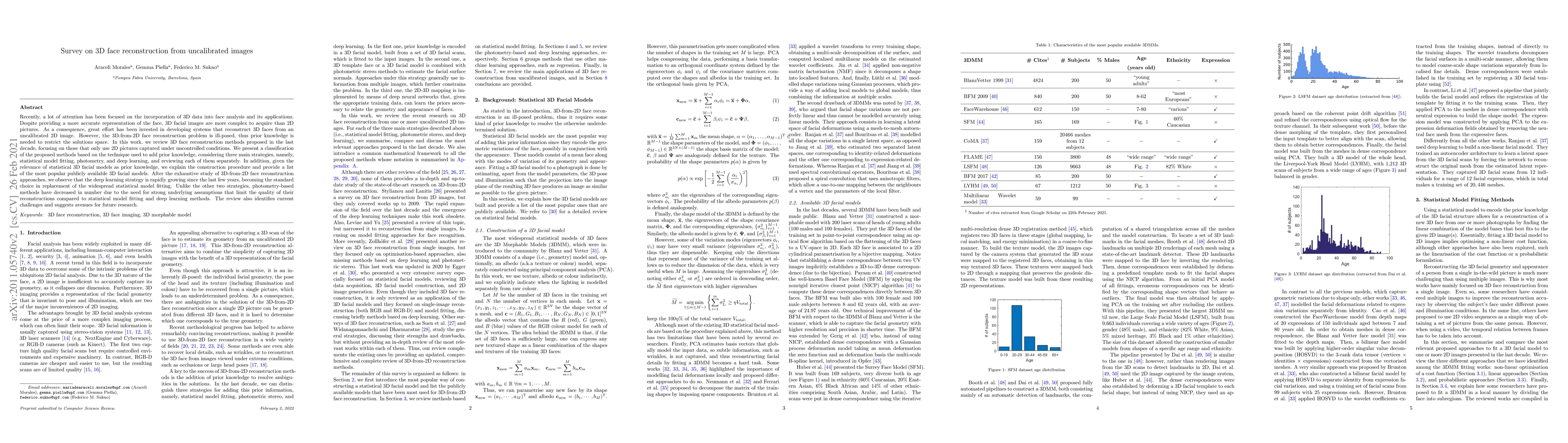 The paper provides a comprehensive survey of 3D face reconstruction methods from uncalibrated 2D images over the last decade, classifying them based on the technique used to add prior knowledge: statistical model fitting, photometry, and deep learning.