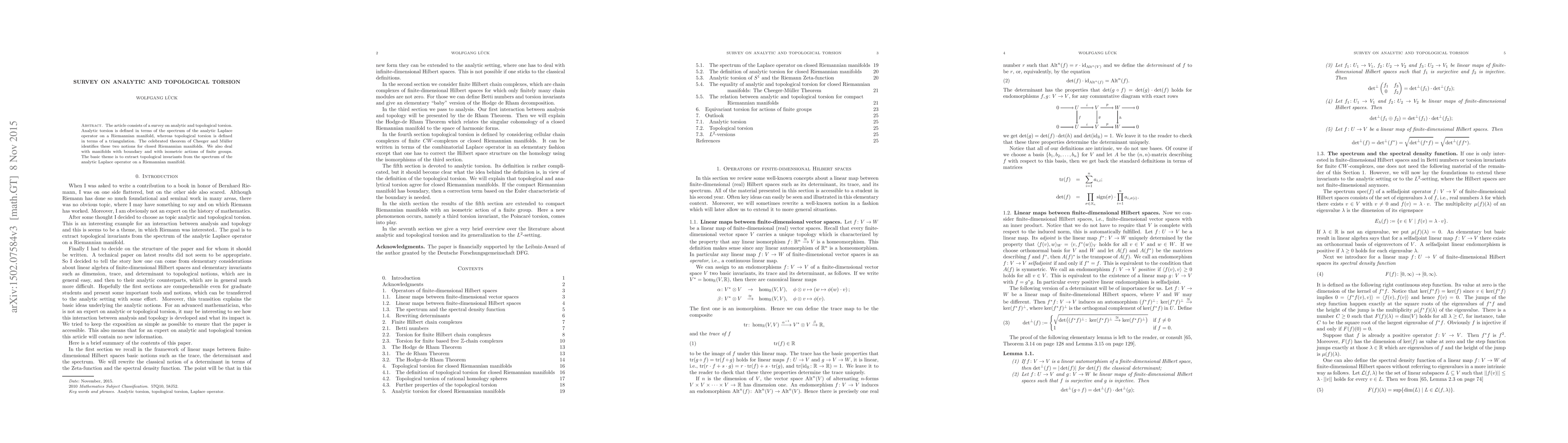 This paper surveys analytic and topological torsion, linking the spectrum of the analytic Laplace operator on Riemannian manifolds to topological invariants. It highlights the Cheeger-Müller theorem that equates these notions for closed manifolds and extends the discussion to manifolds with boundaries and finite group actions.