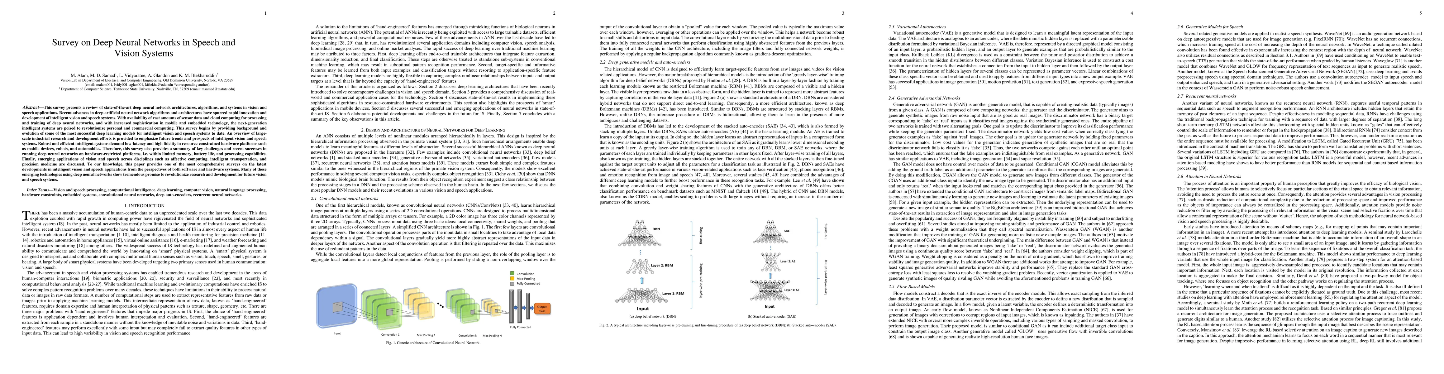This survey reviews state-of-the-art deep neural networks in vision and speech systems, highlighting advancements, challenges in resource-constrained environments, and emerging applications in fields like affective computing and precision medicine. It provides a comprehensive overview of current trends and future prospects in intelligent vision and speech technologies.