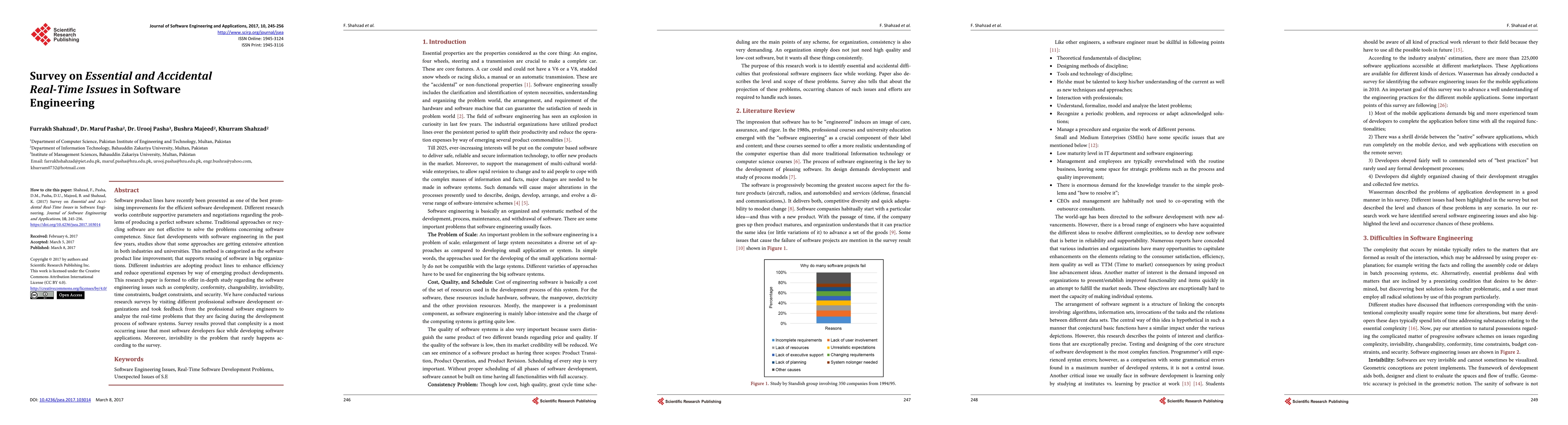 This paper surveys real-time issues in software engineering, focusing on software product lines to improve efficiency. The study reveals that complexity is the most frequent problem faced by developers, while invisibility is least common.