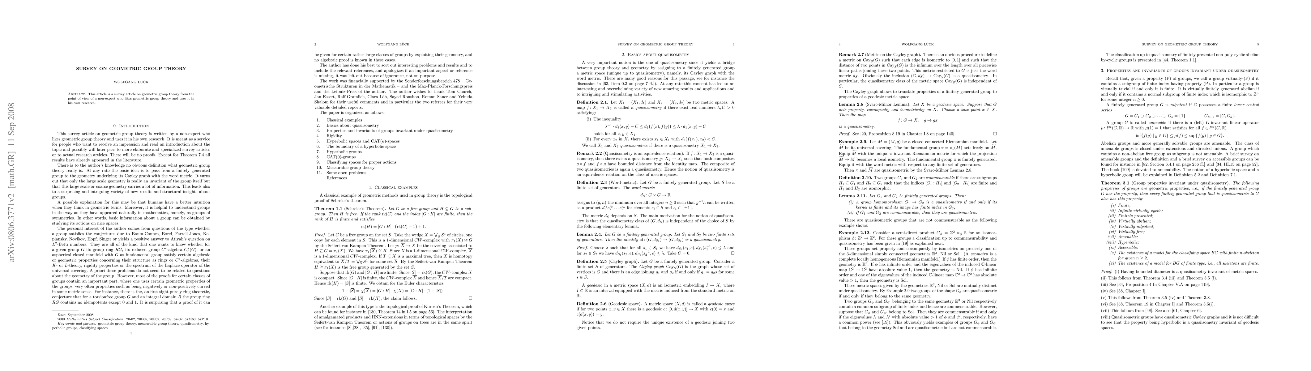 This article is a survey article on geometric group theory from the point of view of a non-expert who likes geometric group theory and uses it in his own research. The sections are: classical examples, basics about quasiisometry,properties and invariants of groups invariant under quasiisometry, rigidity, hyperbolic spaces and CAT(k)-spaces, the boundary of a hyperbolic space, hyperbolic groups, CAT(0)-groups, classifying spaces for proper actions, measurable group theory, some open problems.