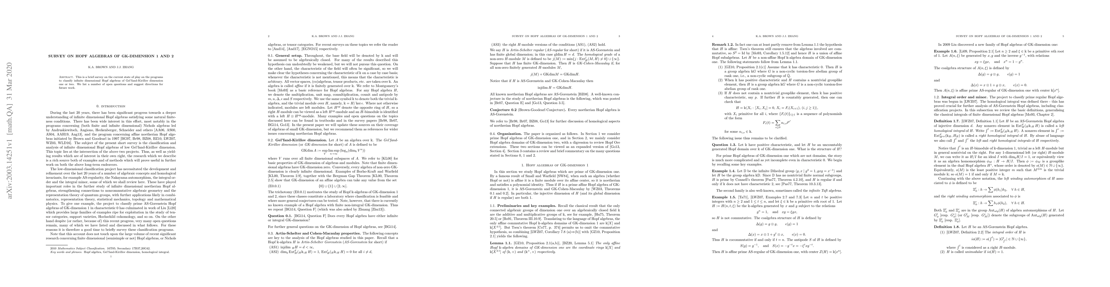 This is a brief survey on the current state of play on the programs to classify infinite dimensional Hopf algebras of Gel'fand-Kirillov dimension one or two. We list a number of open questions and suggest directions for future work.