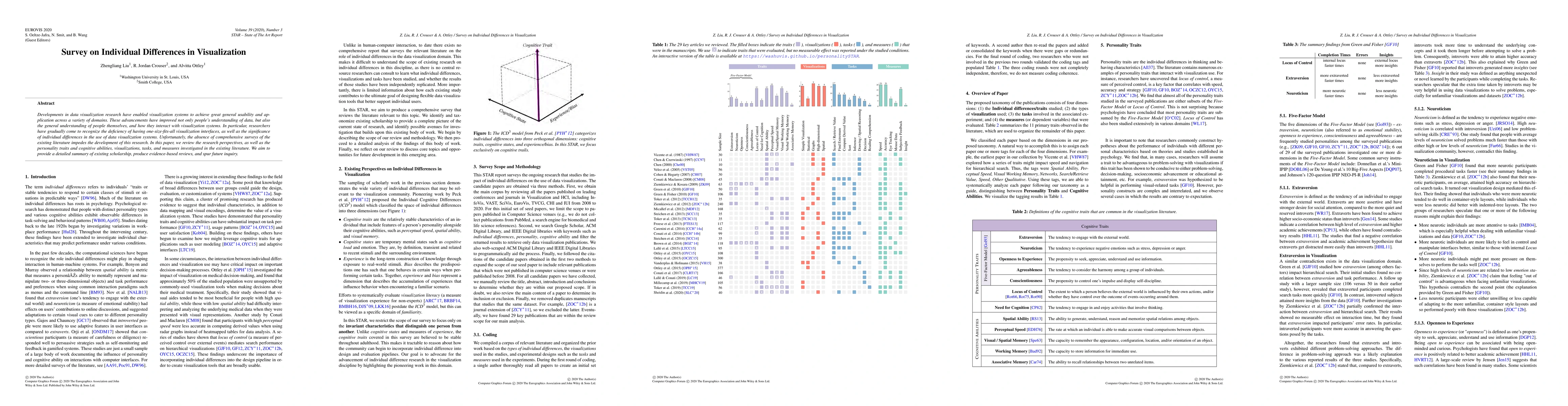 The study provides a comprehensive summary of the key findings and methodologies, highlighting the need for more personalized approaches to data visualization that account for individual personality traits, cognitive abilities, and visualizations.