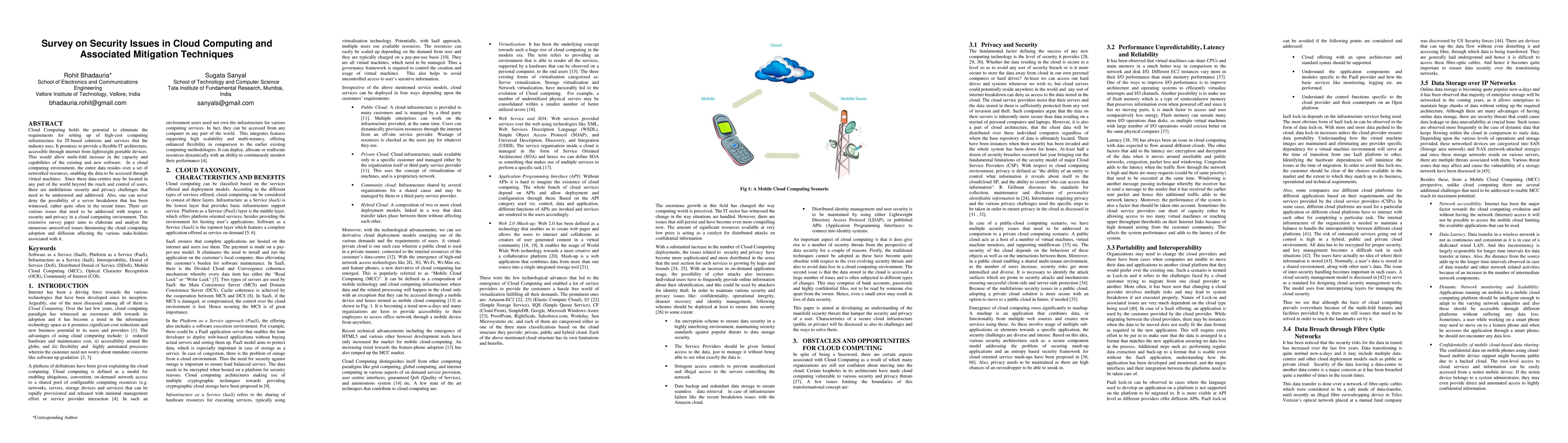This paper surveys the extensive security challenges in cloud computing, including data breaches and privacy issues, and discusses various mitigation techniques to address these threats and enhance the security of cloud-based services.