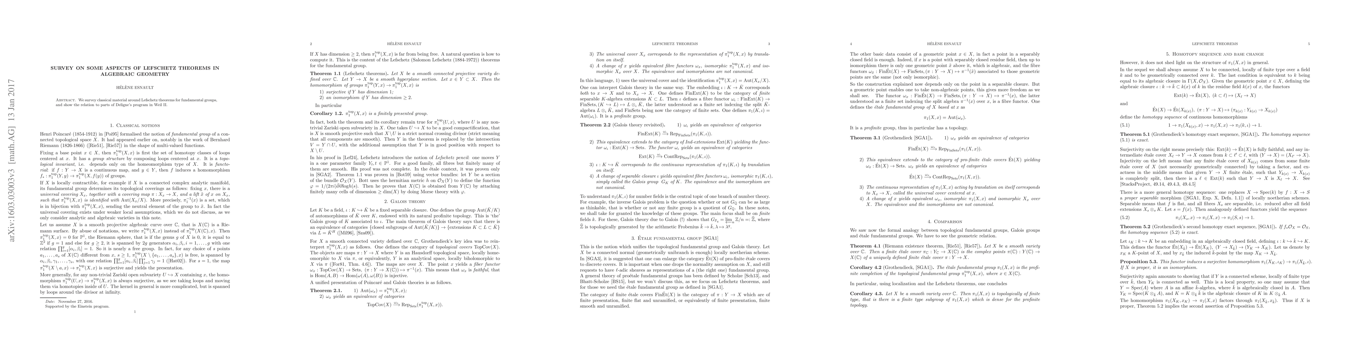 We survey classical material around Lefschetz theorems for fundamental groups, and show the relation to parts of Deligne's program in Weil II. The notes are based on some aspects of the material for the Santal\'o lectures at the Universidad Complutense de Madrid (October 2015) and the Rademacher lectures at the University of Pennsylvania (February 2016). They appear in Revista Matem\'atica Complutense.