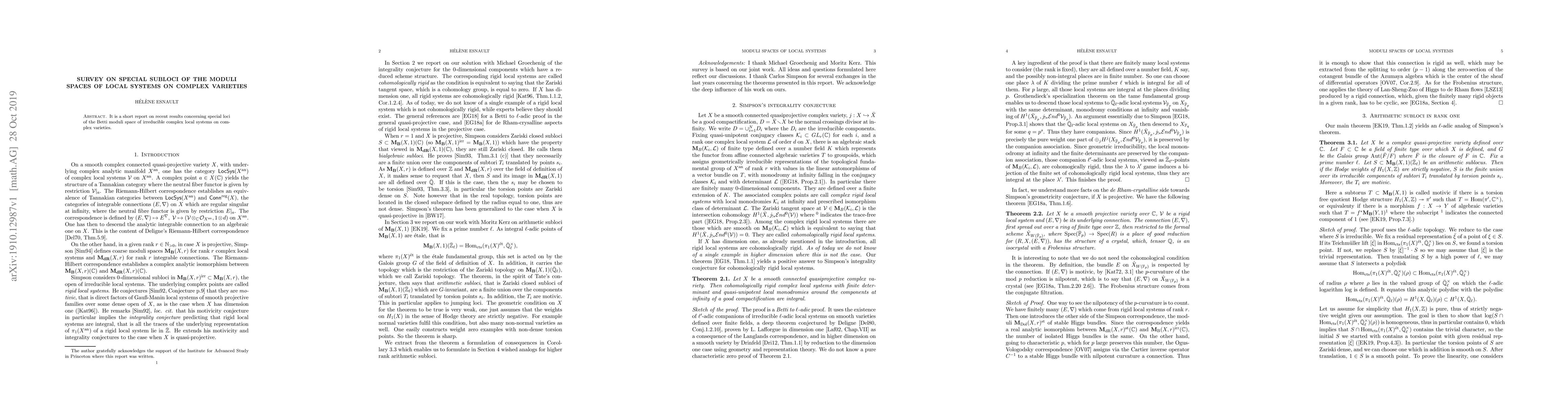 It is a short report for the ICCM2019 Proceedings on recent results obtained with Michael Groechenig and Moritz Kerz concerning special subloci of the Betti moduli space of irreducible complex local systems on complex varieties.
