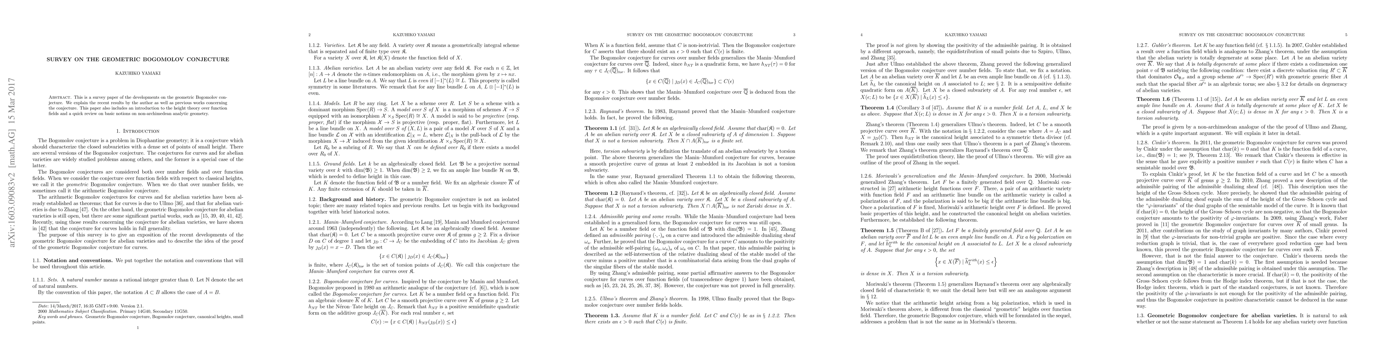 This survey paper reviews recent and previous developments on the geometric Bogomolov conjecture, including the author's contributions, and introduces height theory over function fields and basic notions in non-archimedean analytic geometry.