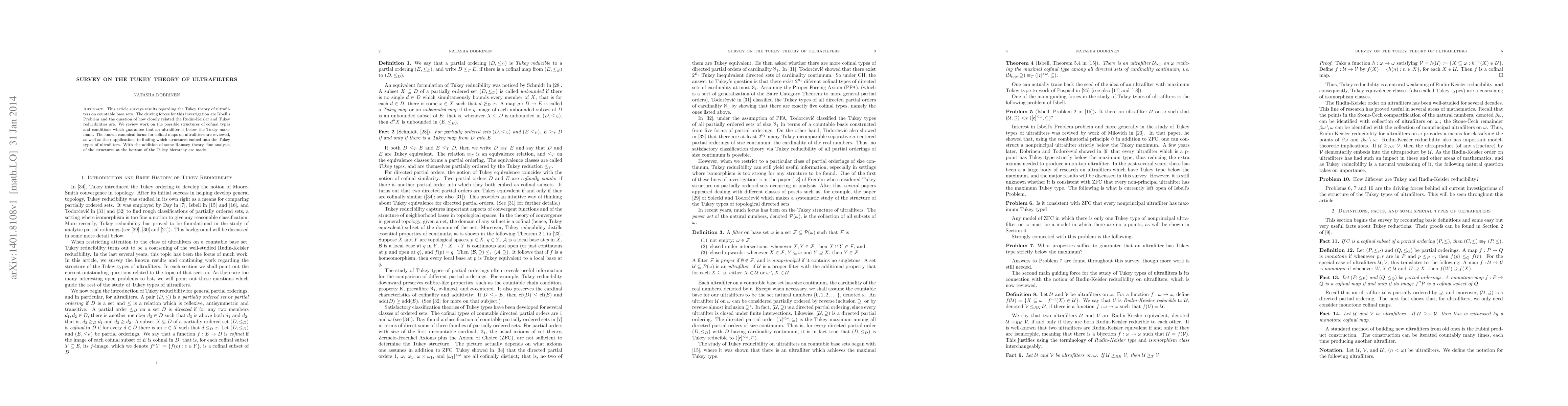 This paper surveys results on the Tukey theory of ultrafilters, focusing on Isbell's Problem and the relationship between Rudin-Keisler and Tukey reducibilities. It reviews canonical forms for cofinal maps and their applications in embedding structures into Tukey types, incorporating Ramsey theory for fine analyses of ultrafilter structures.