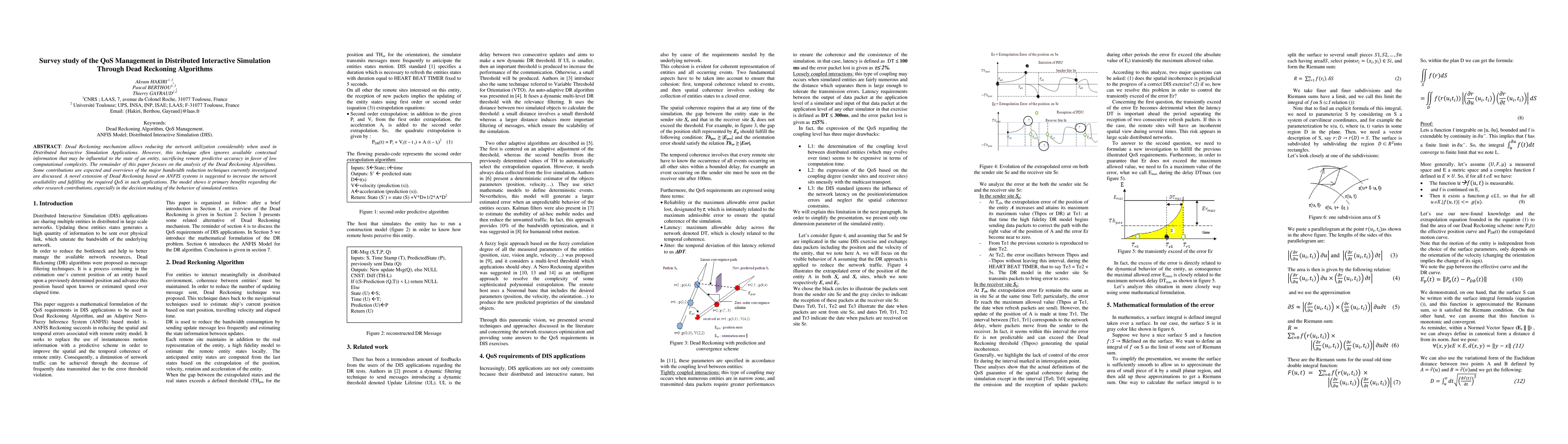 This paper analyzes Dead Reckoning Algorithms for reducing network utilization in Distributed Interactive Simulation, highlighting their trade-off between computational complexity and predictive accuracy. It proposes a novel Dead Reckoning extension based on ANFIS systems to enhance network availability and improve QoS by leveraging contextual information.