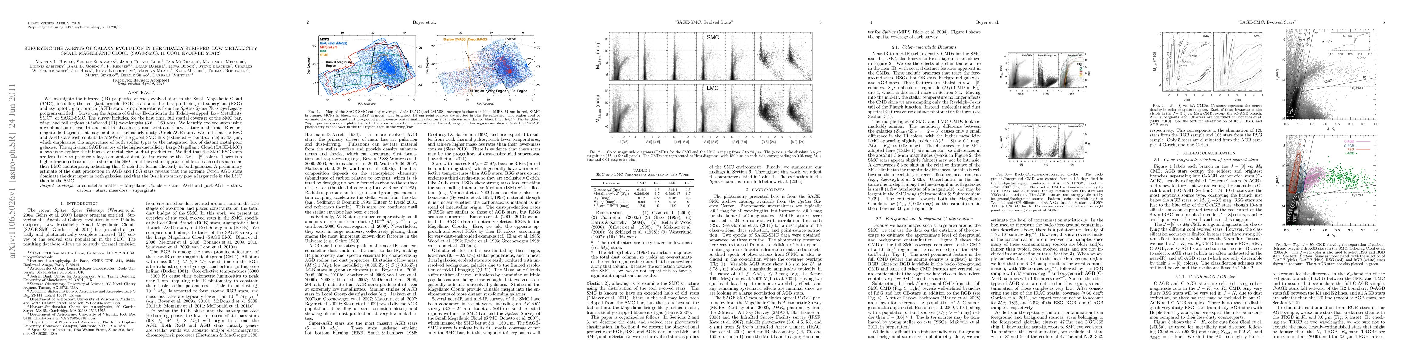 The research investigates the infrared properties of cool, evolved stars in the Small Magellanic Cloud (SMC) using Spitzer Space Telescope observations from the SAGE-SMC Legacy program, covering the bar, wing, and tail regions at 3.6 - 160 microns.
