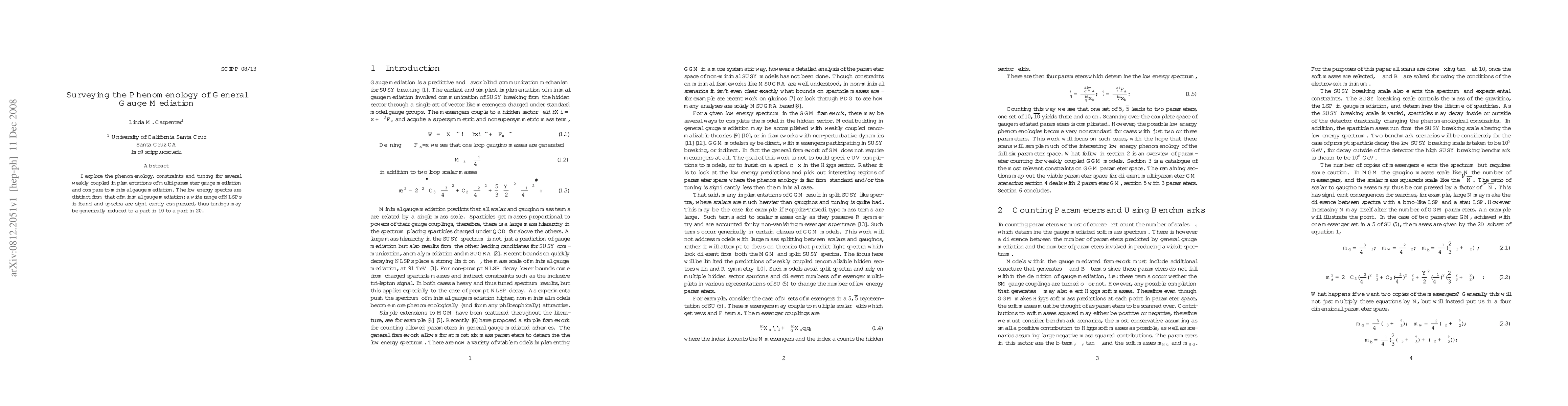 This paper investigates the phenomenology, constraints, and tuning requirements of various weakly coupled implementations of multi-parameter gauge mediation, revealing distinct low energy spectra compared to minimal gauge mediation, with a wide range of next-to-lightest supersymmetric particles (NLSPs) and significantly compressed spectra, potentially reducing tuning to a part in 10 to 20.