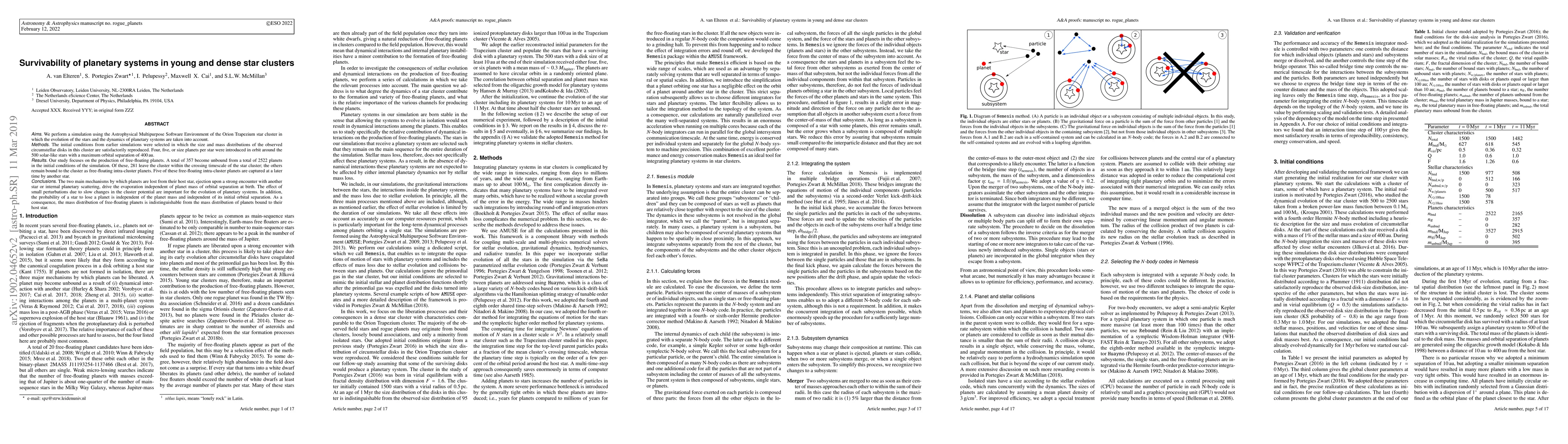 We perform a simulation using the Astrophysical Multipurpose Software Environment of the Orion Trapezium star cluster in which the evolution of the stars and the dynamics of planetary systems are taken into account. The initial conditions from earlier simulations were selected in which the size and mass distributions of the observed circumstellar disks in this cluster are satisfactorily reproduced. Four, five, or size planets per star were introduced in orbit around the 500 solar-like stars with a maximum orbital separation of 400au. Our study focuses on the production of free-floating planets. A total of 357 become unbound from a total of 2522 planets in the initial conditions of the simulation. Of these, 281 leave the cluster within the crossing timescale of the star cluster; the others remain bound to the cluster as free-floating intra-cluster planets. Five of these free-floating intra-cluster planets are captured at a later time by another star. The two main mechanisms by which planets are lost from their host star, ejection upon a strong encounter with another star or internal planetary scattering, drive the evaporation independent of planet mass of orbital separation at birth. The effect of small perturbations due to slow changes in the cluster potential are important for the evolution of planetary systems. In addition, the probability of a star to lose a planet is independent of the planet mass and independent of its initial orbital separation. As a consequence, the mass distribution of free-floating planets indistinguishable from the mass distribution of planets bound to their host star.