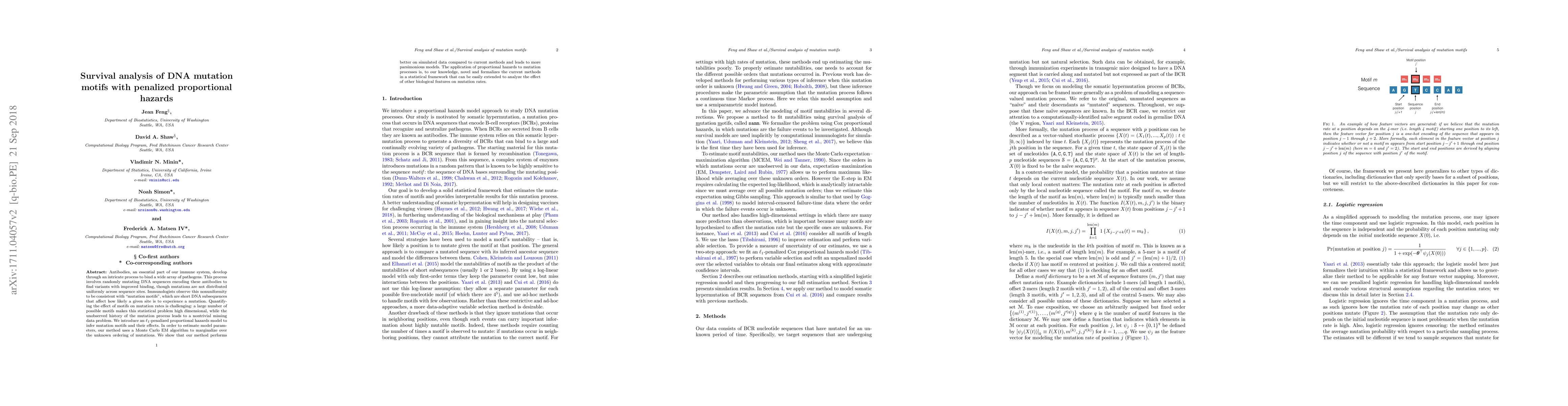 This paper introduces an $\ell_1$-penalized proportional hazards model to identify and quantify the effects of DNA mutation motifs on antibody mutation rates. The method uses a Monte Carlo EM algorithm to handle missing data and high dimensionality, demonstrating superior performance on simulated data compared to existing approaches.
