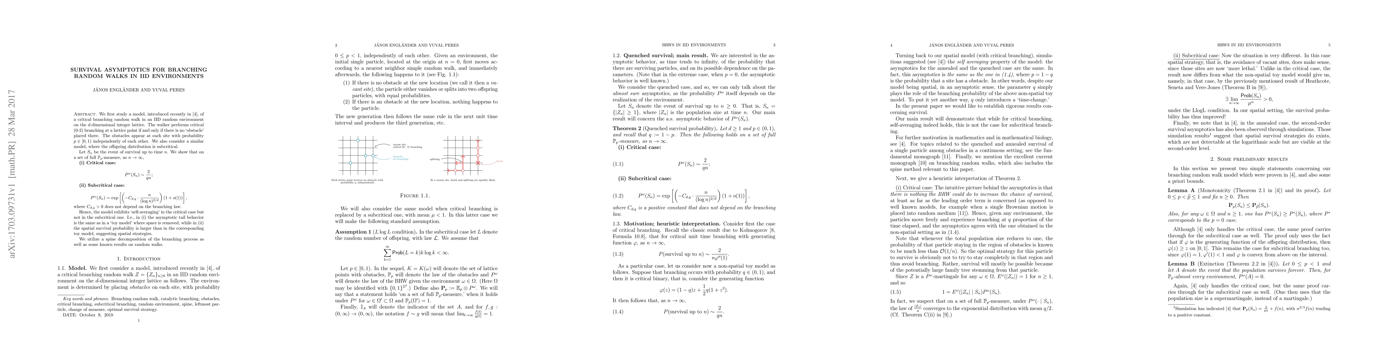 This paper investigates the survival asymptotics of critical and subcritical branching random walks in independent and identically distributed (IID) random environments. It demonstrates that in the critical case, the survival probability follows a self-averaging behavior, while in the subcritical case, spatial strategies enhance survival, diverging from the behavior in a simplified "toy model" without spatial constraints.