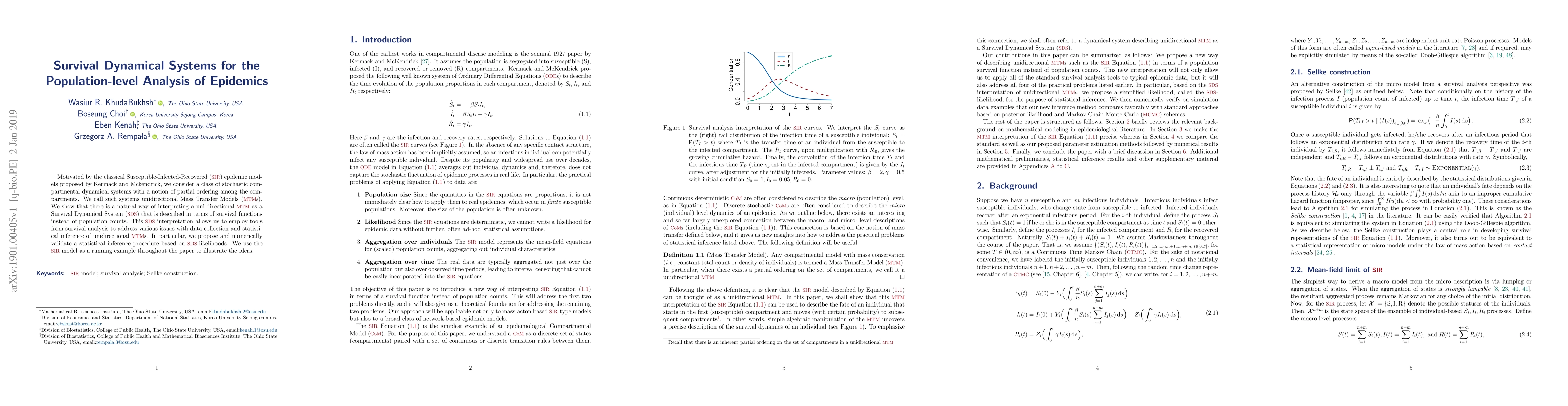 Motivated by the classical Susceptible-Infected-Recovered (SIR) epidemic models proposed by Kermack and Mckendrick, we consider a class of stochastic compartmental dynamical systems with a notion of partial ordering among the compartments. We call such systems unidirectional Mass Transfer Models (MTMs). We show that there is a natural way of interpreting a uni-directional MTM as a Survival Dynamical System (SDS) that is described in terms of survival functions instead of population counts. This SDS interpretation allows us to employ tools from survival analysis to address various issues with data collection and statistical inference of unidirectional MTMs. In particular, we propose and numerically validate a statistical inference procedure based on SDS-likelihoods. We use the SIR model as a running example throughout the paper to illustrate the ideas.