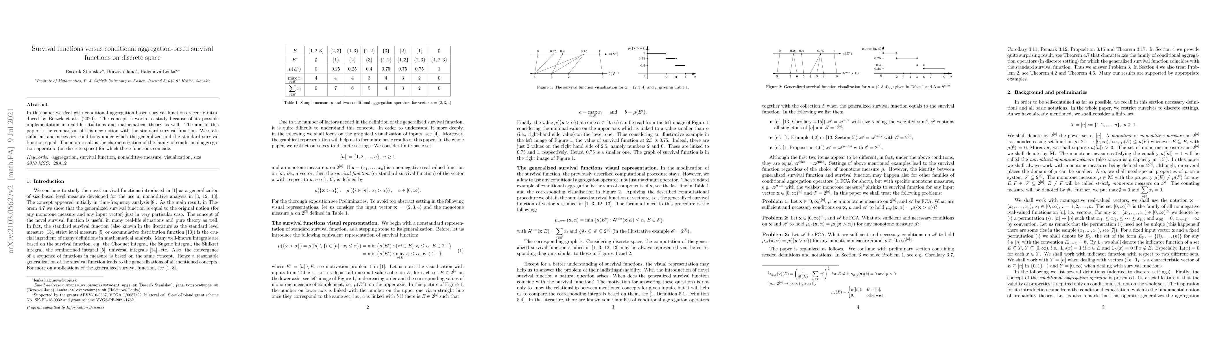 This paper compares conditional aggregation-based survival functions with standard survival functions on discrete space, identifying conditions under which they coincide, with implications for real-life applications and mathematical theory.