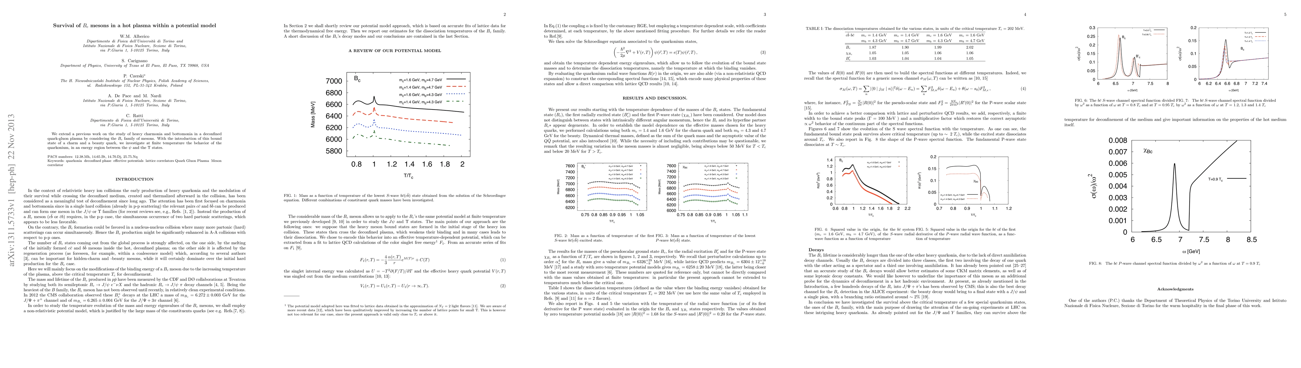 We extend a previous work on the study of heavy charmonia and bottomonia in a deconfined quark-gluon plasma by considering the Bc family of mesons. With the introduction of this bound state of a charm and a beauty quark, we investigate at finite temperature the behavior of the quarkonium, in an energy region between the {\psi} and the {\Upsilon} states.