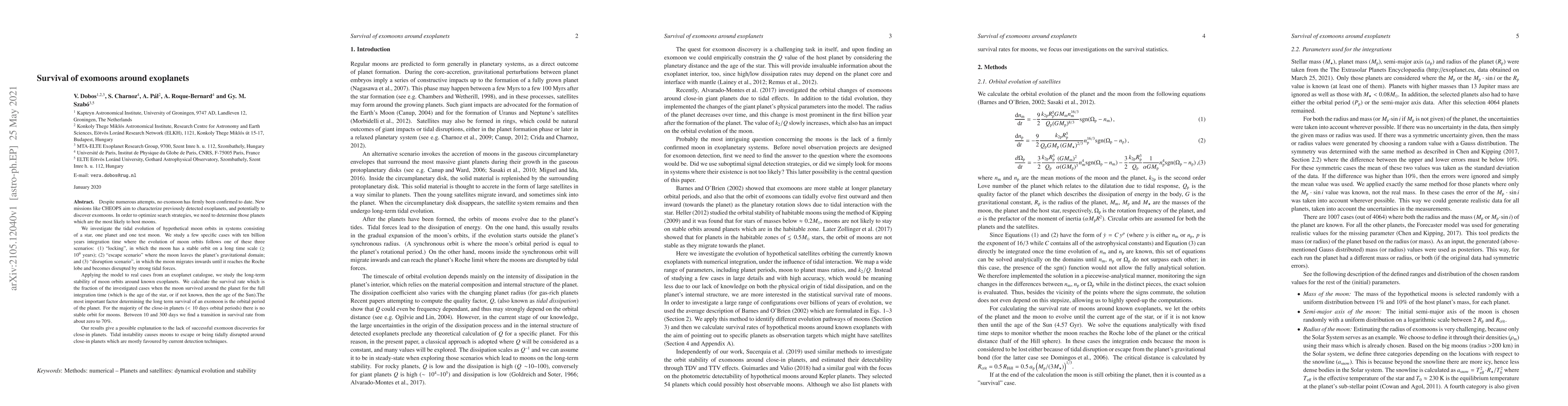 This research investigates the long-term stability of hypothetical exomoons around exoplanets, finding that the orbital period of the planet is crucial for moon survival. Close-in planets (<10 days) generally do not support stable moon orbits due to tidal instability, explaining the lack of confirmed exomoons around such planets.