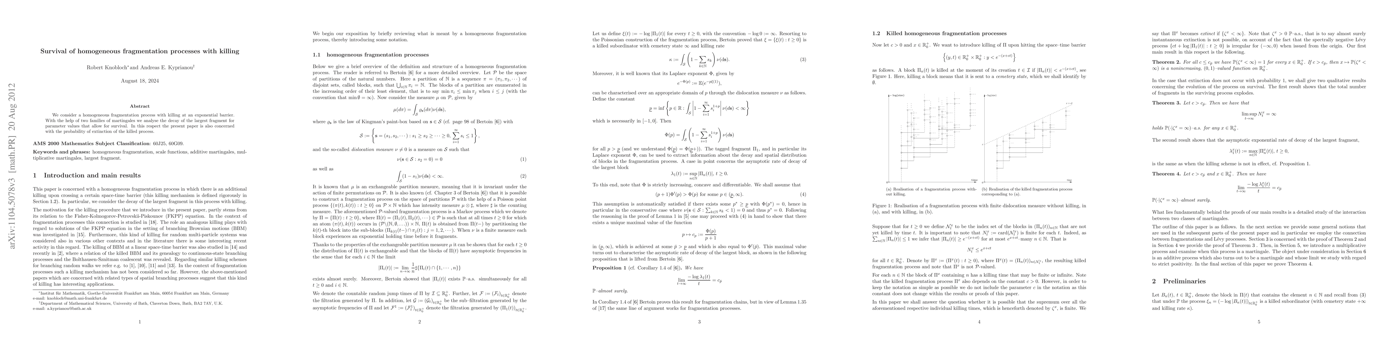 We consider a homogenous fragmentation process with killing at an exponential barrier. With the help of two families of martingales we analyse the growth of the largest fragment for parameter values that allow for survival. In this respect the present paper is also concerned with the probability of extinction of the killed process.