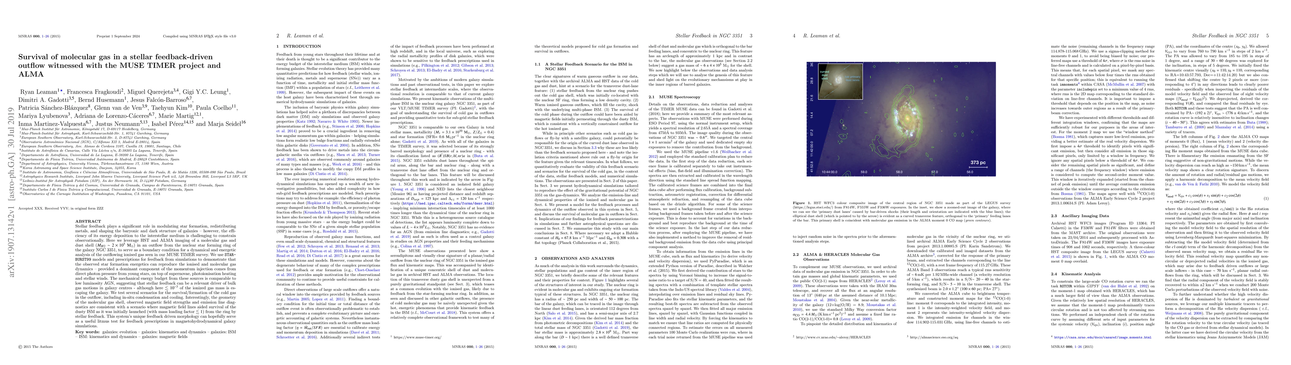 Stellar feedback plays a significant role in modulating star formation, redistributing metals, and shaping the baryonic and dark structure of galaxies -- however, the efficiency of its energy deposition to the interstellar medium is challenging to constrain observationally. Here we leverage HST and ALMA imaging of a molecular gas and dust shell ($M_{H2} \sim 2\times 10^{5} ~{\rm M}_{\odot}$) in an outflow from the nuclear star forming ring of the galaxy NGC 3351, to serve as a boundary condition for a dynamical and energetic analysis of the outflowing ionised gas seen in our MUSE TIMER survey. We use \texttt{STARBURST99} models and prescriptions for feedback from simulations to demonstrate that the observed star formation energetics can reproduce the ionised and molecular gas dynamics -- provided a dominant component of the momentum injection comes from direct photon pressure from young stars, on top of supernovae, photoionisation heating and stellar winds. The mechanical energy budget from these sources is comparable to low luminosity AGN, suggesting that stellar feedback can be a relevant driver of bulk gas motions in galaxy centres - although here $\lesssim 10^{-3}$ of the ionized gas mass is escaping the galaxy. We test several scenarios for the survival/formation of the cold gas in the outflow, including in-situ condensation and cooling. Interestingly, the geometry of the molecular gas shell, observed magnetic field strengths and emission line diagnostics are consistent with a scenario where magnetic field lines aided survival of the dusty ISM as it was initially launched (with mass loading factor $\lesssim 1$) from the ring by stellar feedback. This system's unique feedback driven morphology can hopefully serve as a useful litmus test for feedback prescriptions in magnetohydrodynamical galaxy simulations.